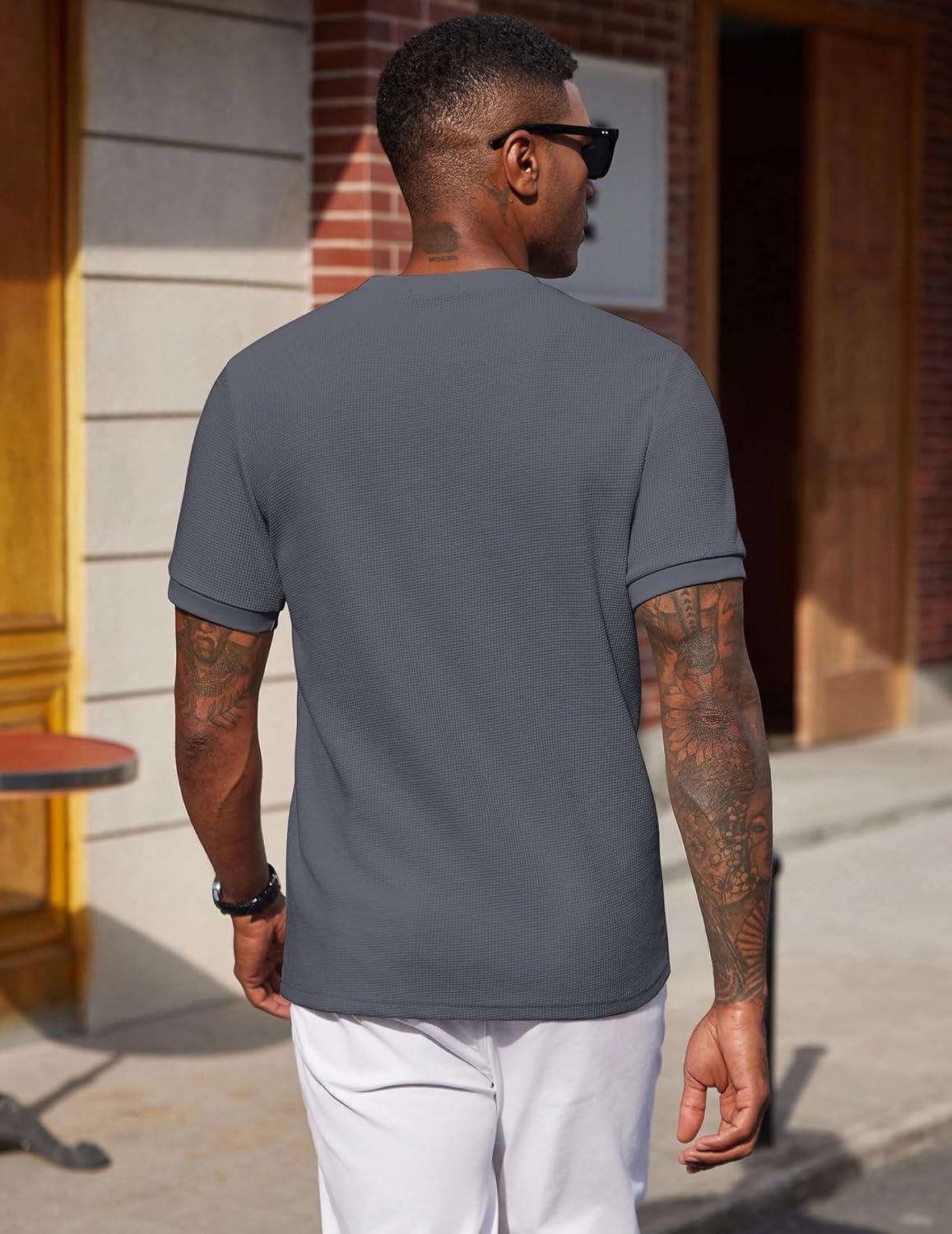 COOFANDY Men’s Waffle T-Shirts Short Sleeve Casual Crew Neck Shirt Cotton Summer Plain Pullover Tees(Charcoal Gray)