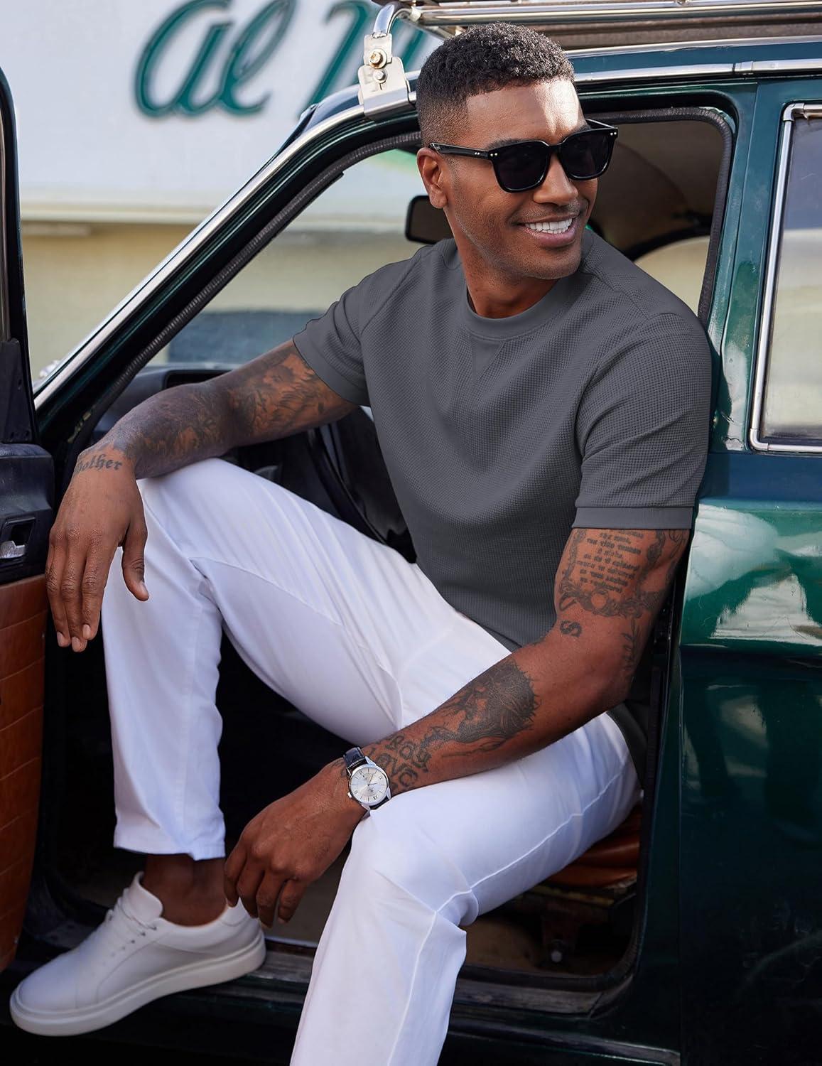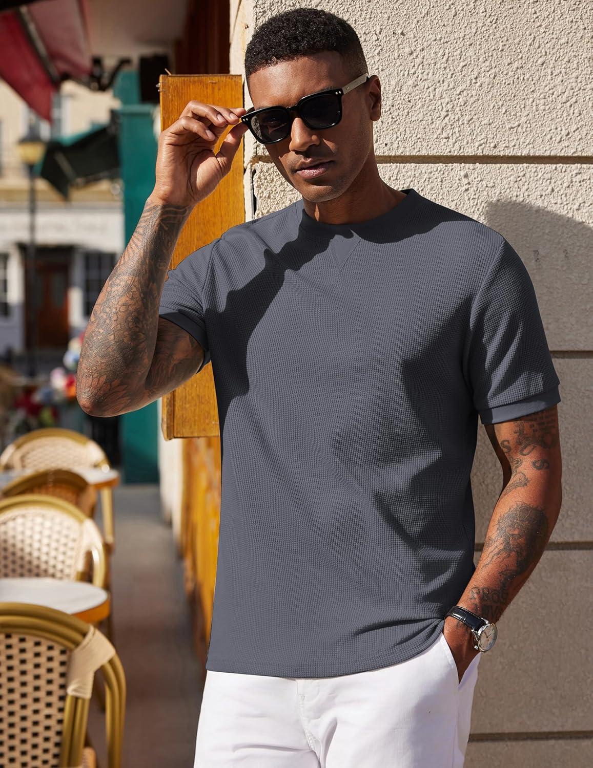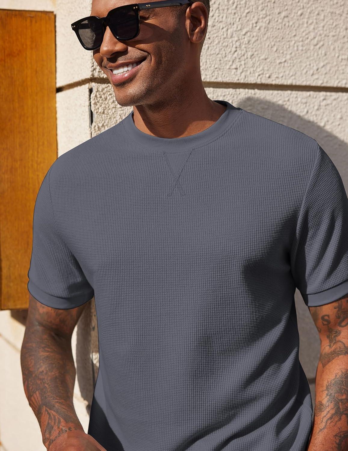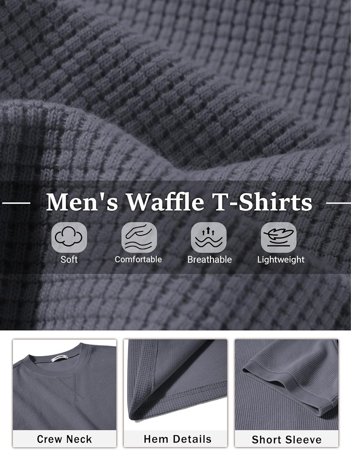 COOFANDY Men's Waffle T-Shirts Short Sleeve Casual Crew Neck Shirt Cotton Summer Plain Pullover Tees(Charcoal Gray)