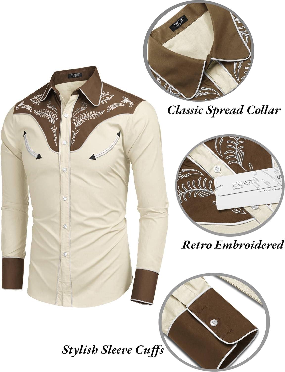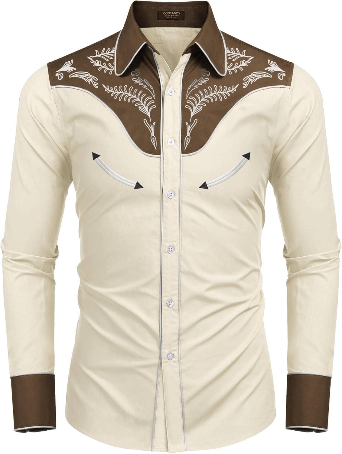 COOFANDY Men’s Western Cowboy Shirt Embroidered Button Down Long Sleeve Shirts(Cotton – Brown)