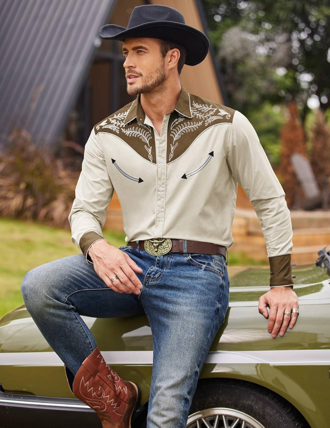 COOFANDY Men's Western Cowboy Embroidered Shirt Casual Button Down Shirt