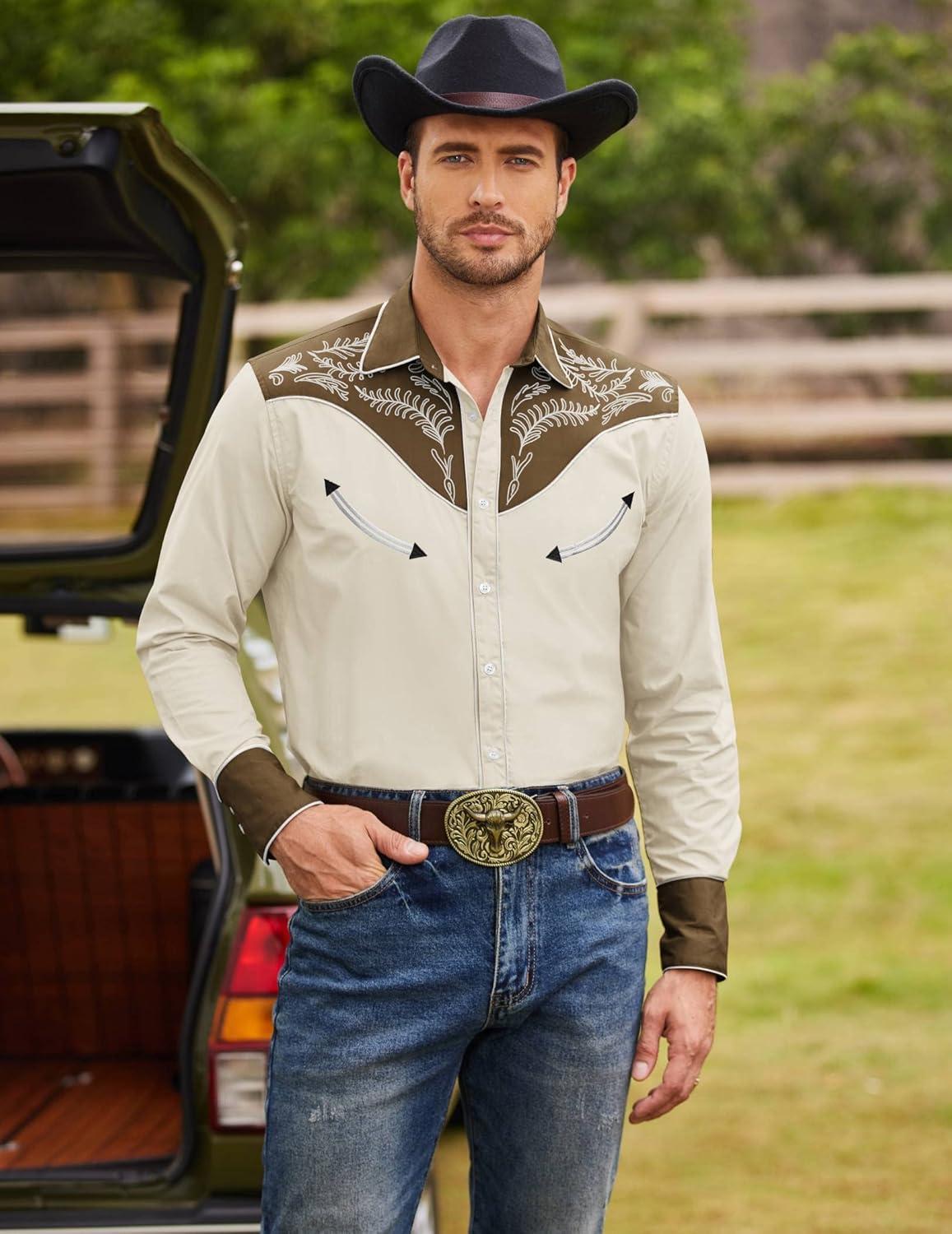 Get more for your money with our exclusive bundle deals on COOFANDY Men’s Western Cowboy Shirt Embroidered Button Down Long Sleeve Shirts(Cotton – Creamy White) and accessories.