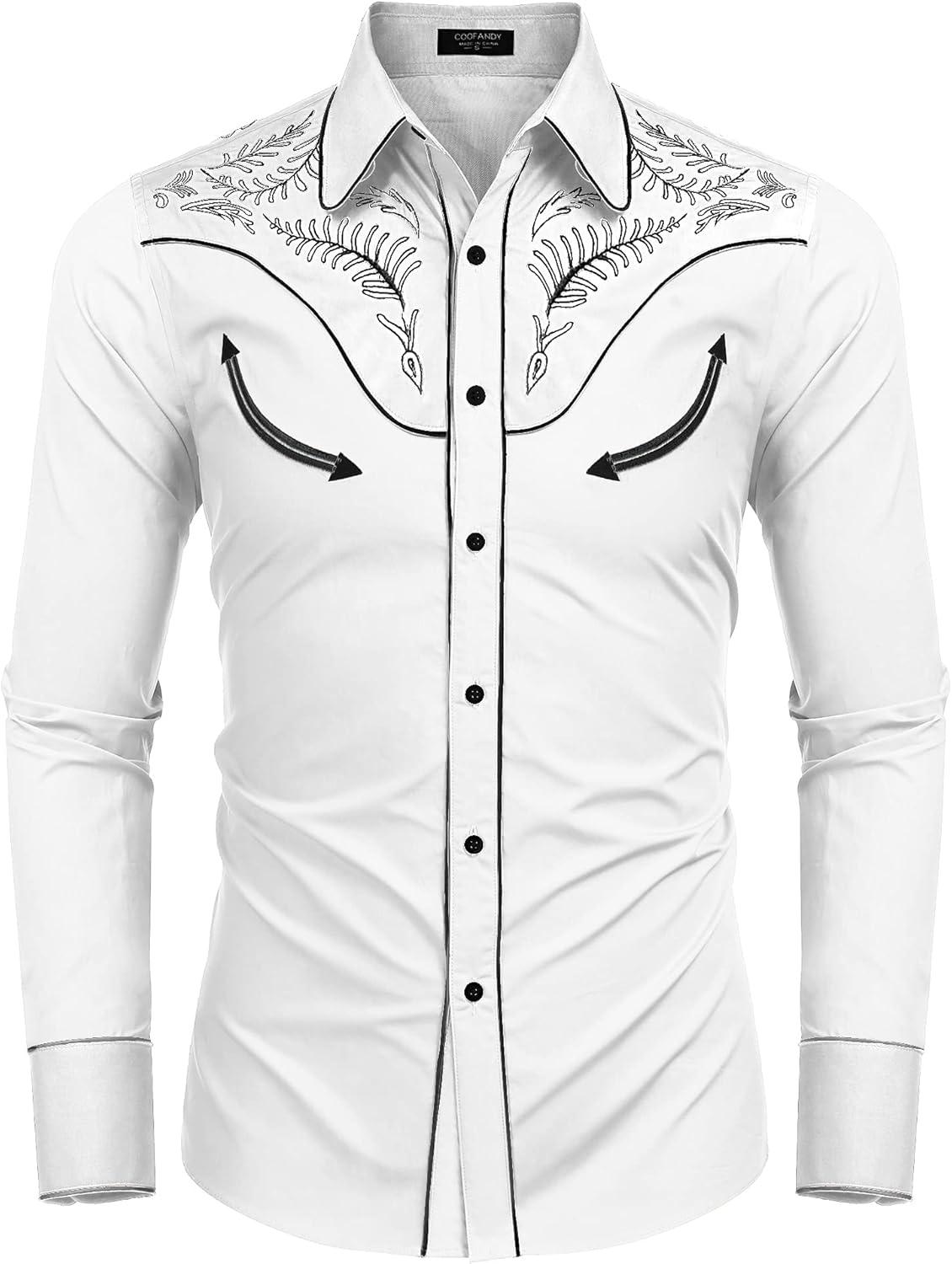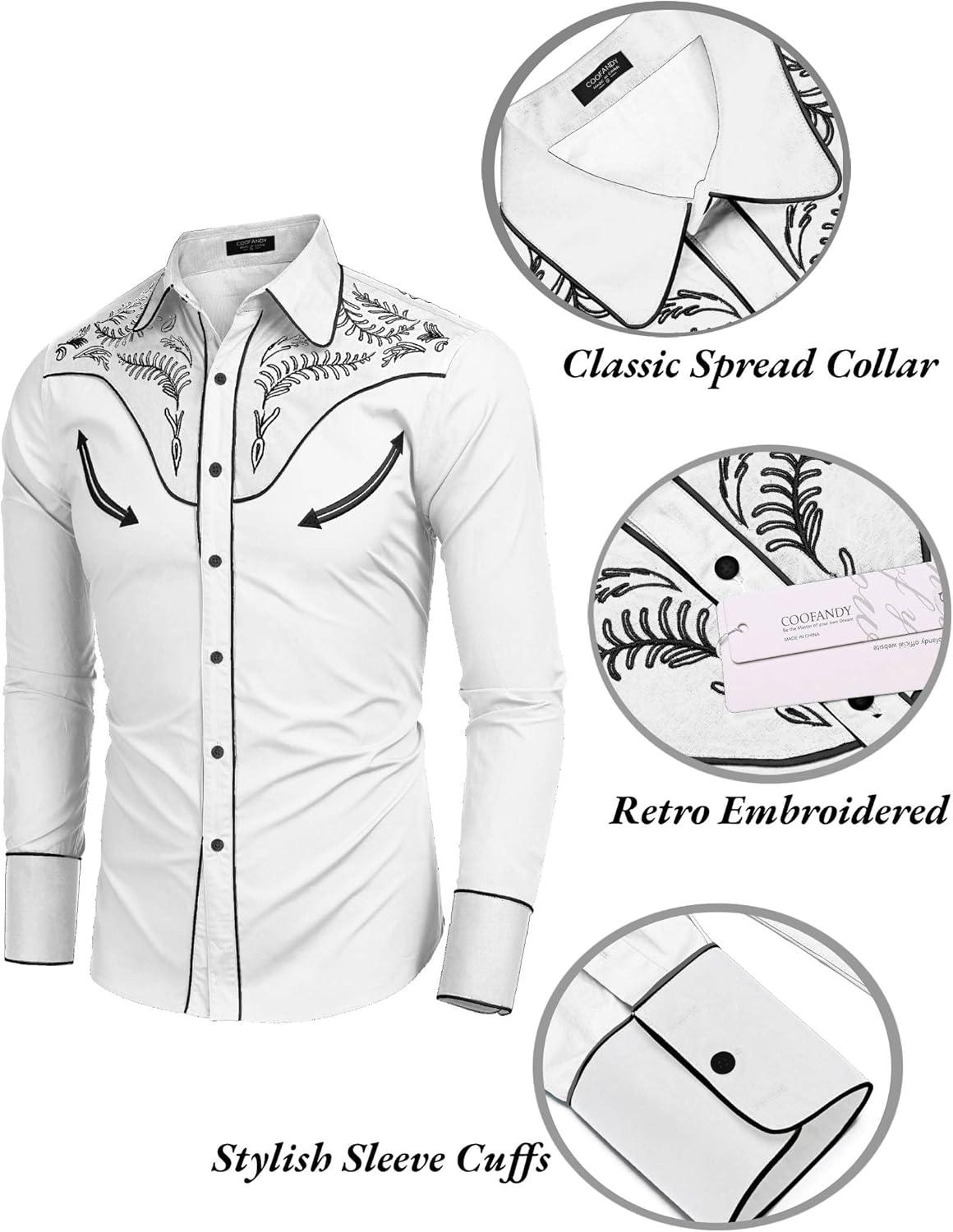 COOFANDY Men's Western Cowboy Embroidered Shirt Casual Button Down Shirt