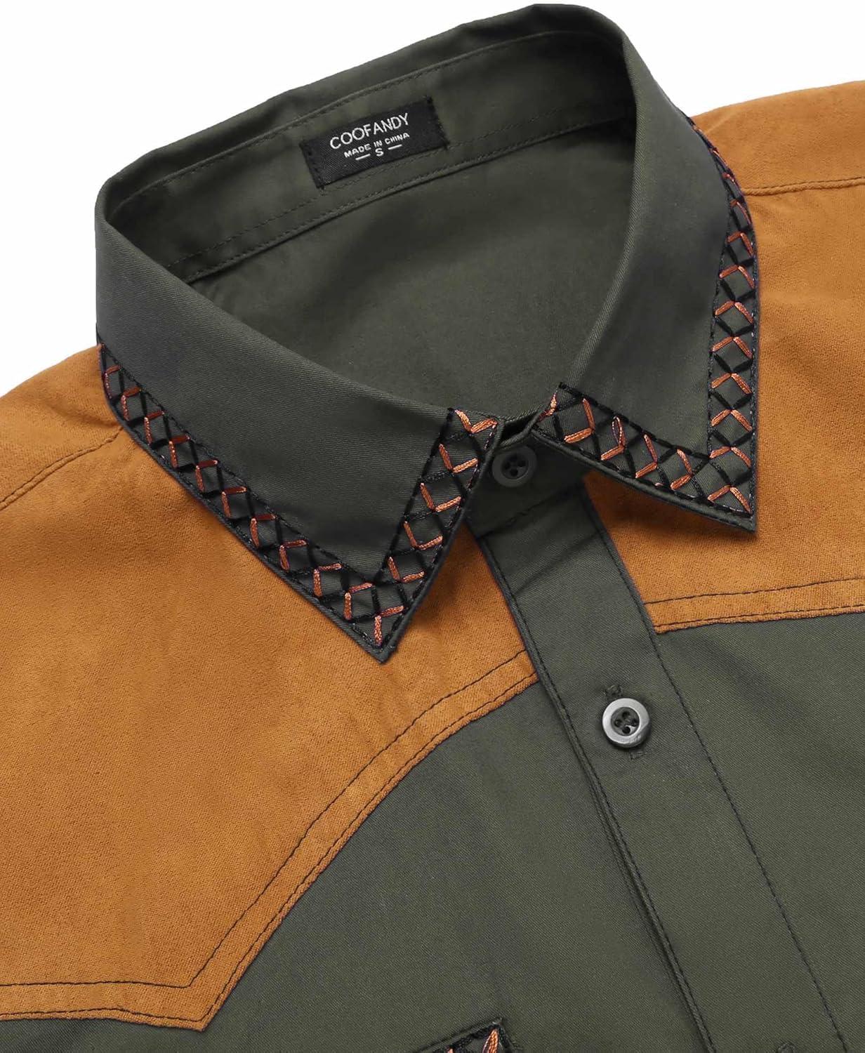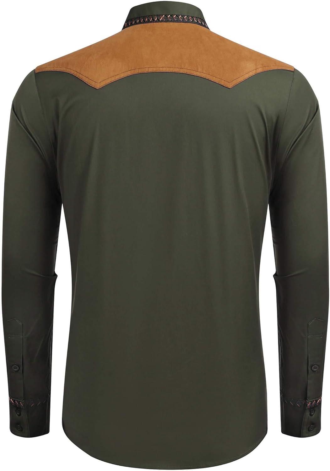 COOFANDY Men's Western Cowboy Shirt Embroidered Long Sleeve Slim Fit Casual Cotton Button Down Hippie Shirts with Pockets(Army Green)