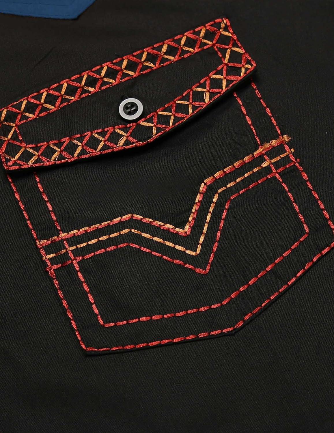COOFANDY Men’s Western Cowboy Shirt Embroidered Long Sleeve Slim Fit Casual Cotton Button Down Hippie Shirts with Pockets(Black & Blue)