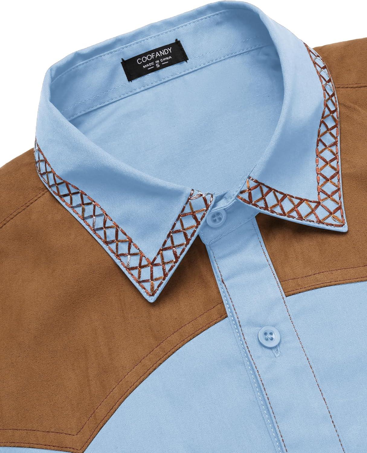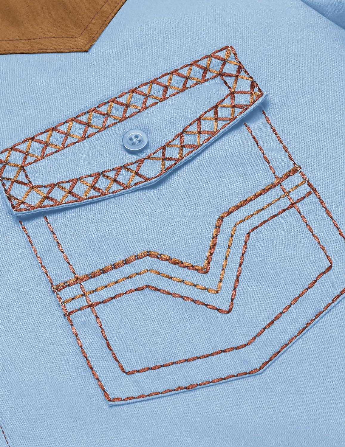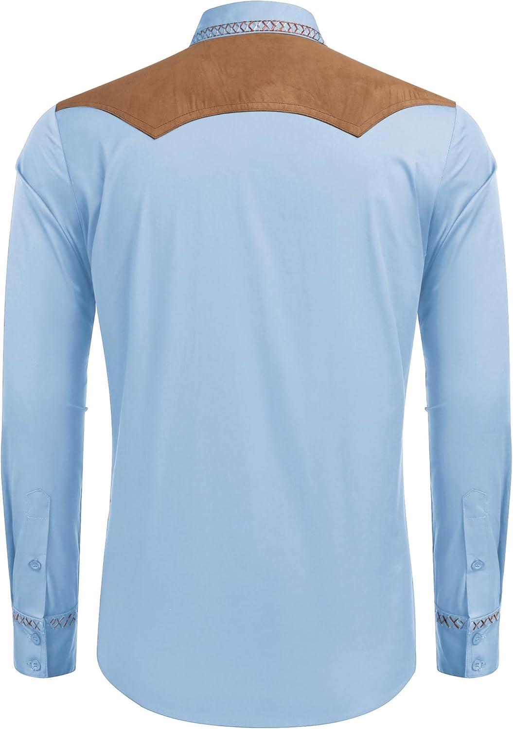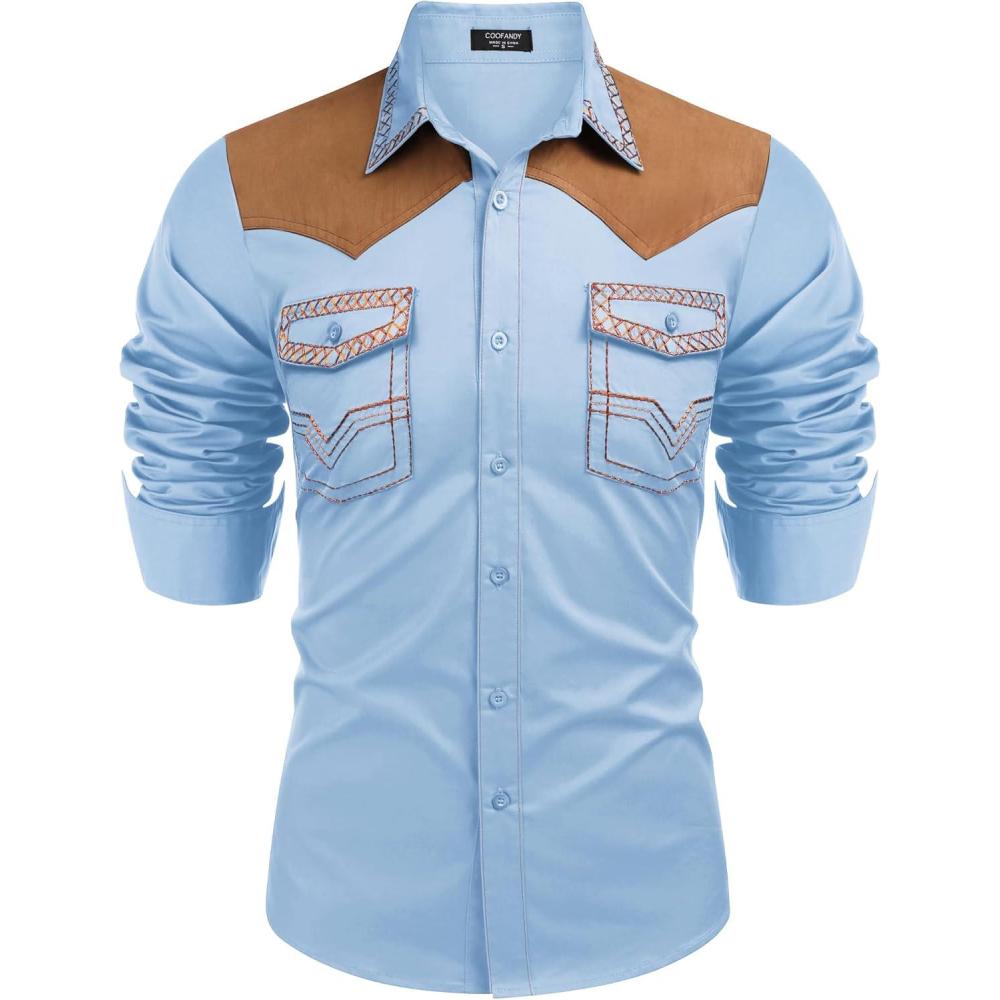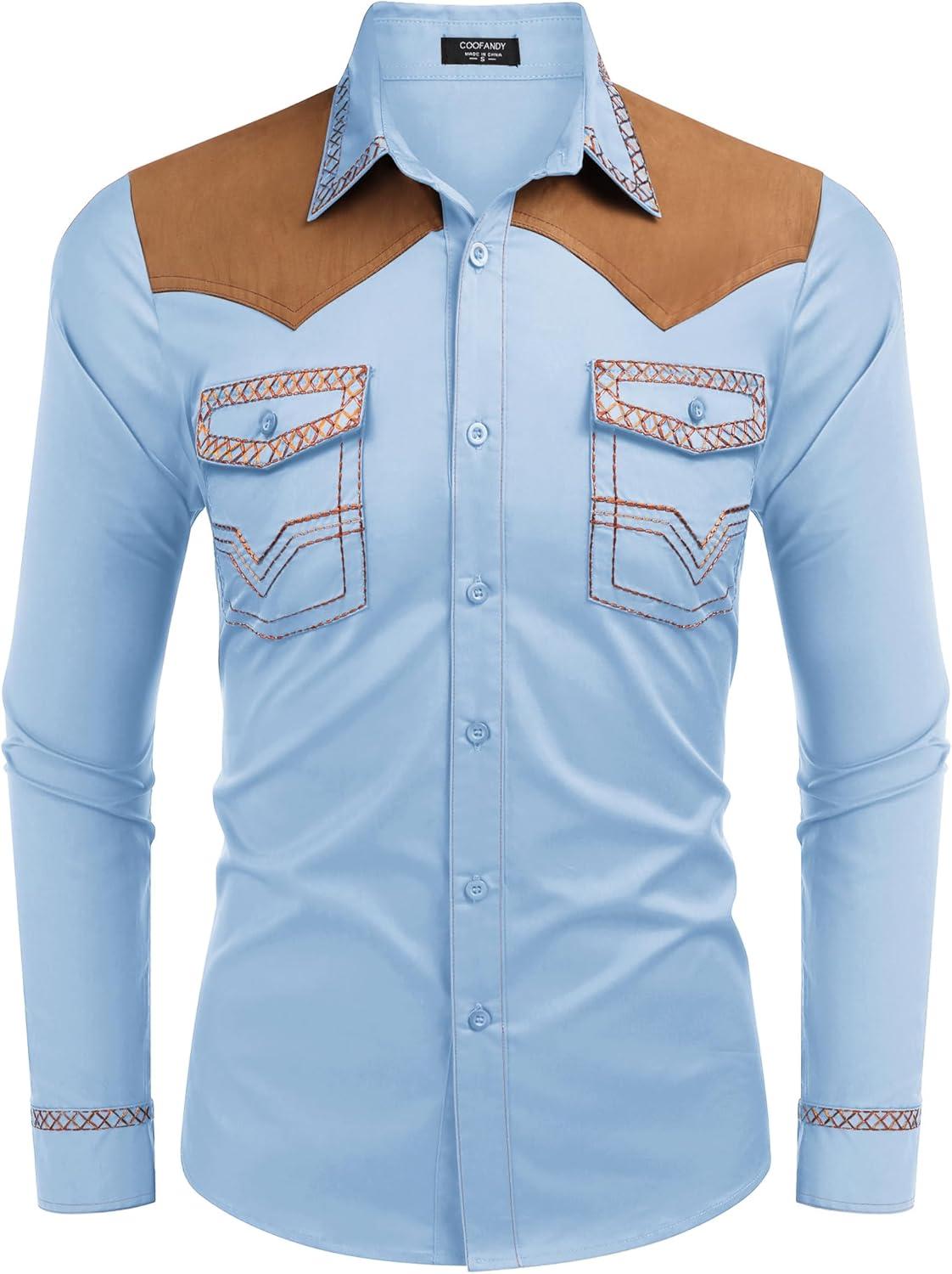 COOFANDY Men's Western Cowboy Shirt Embroidered Long Sleeve Slim Fit Casual Cotton Button Down Hippie Shirts with Pockets(Light Blue)
