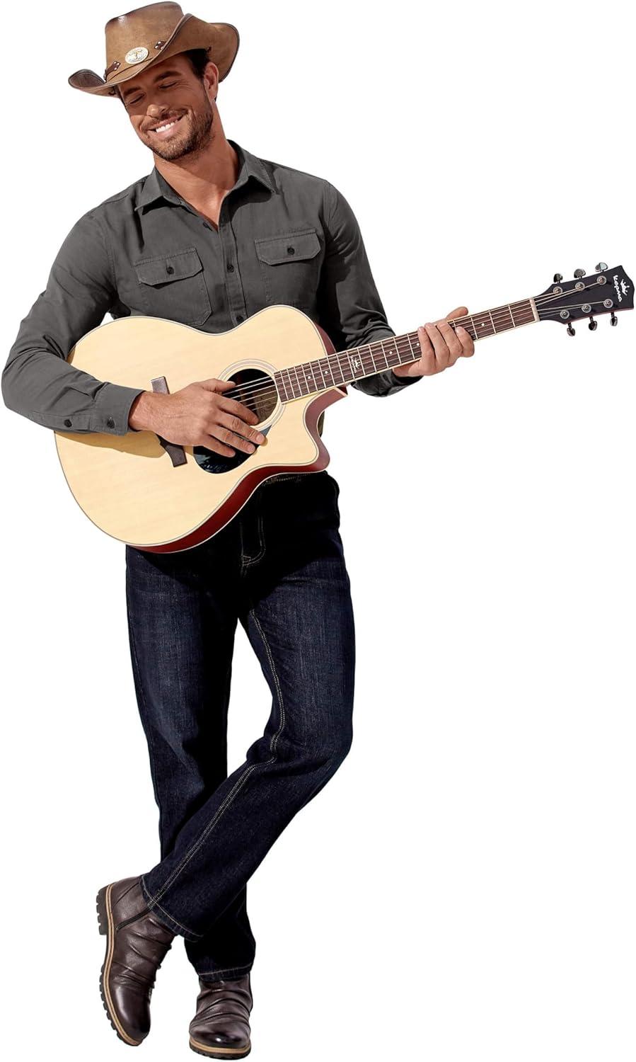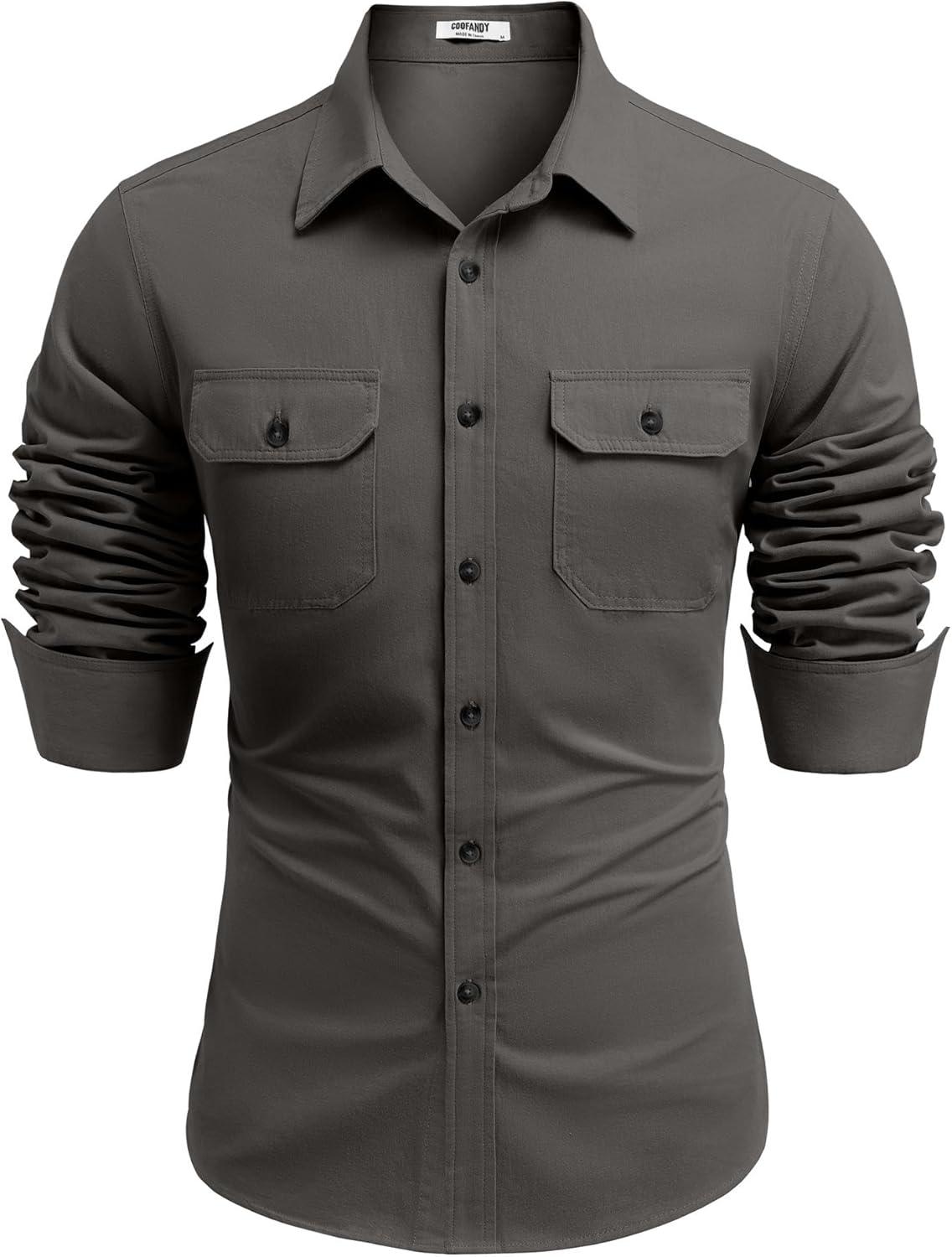 COOFANDY Mens Western Cowboy Shirt Long Sleeve Cotton Button Down Work Shirts with Pockets(Dark Grey)