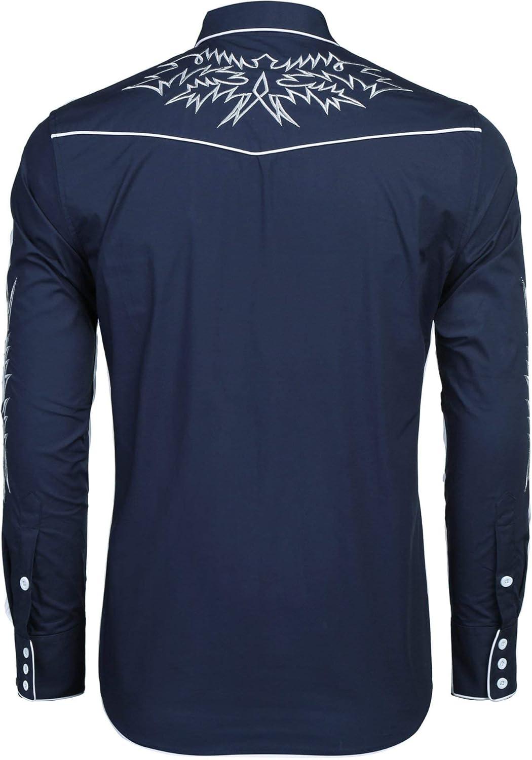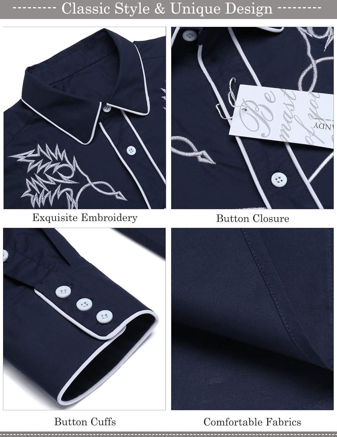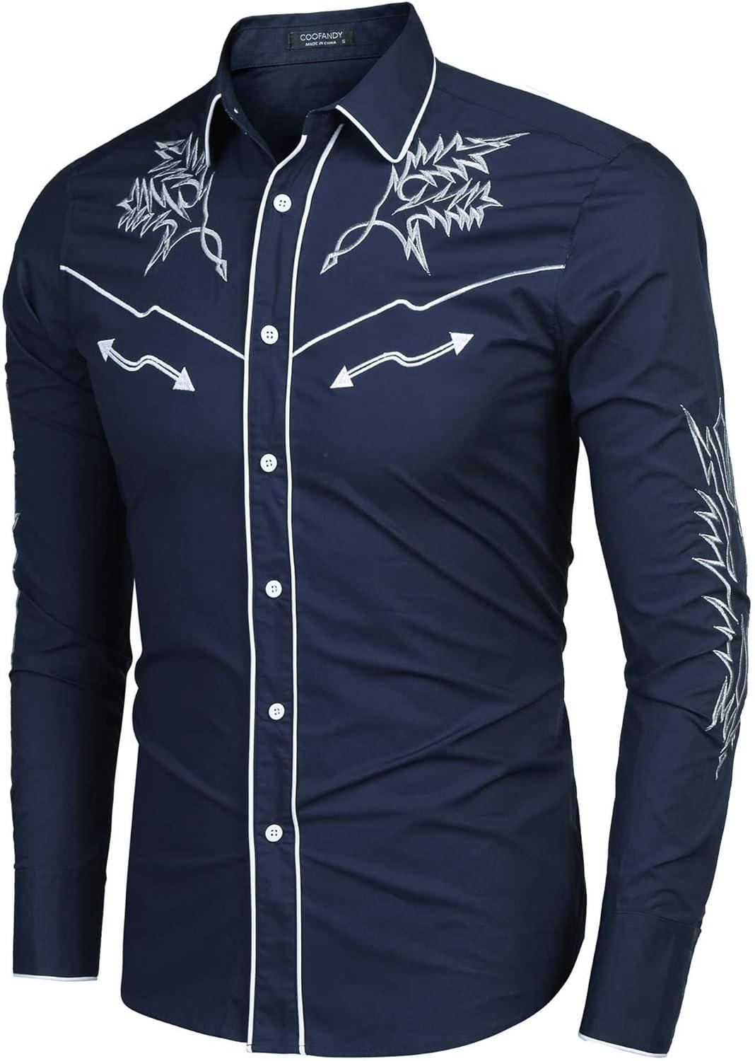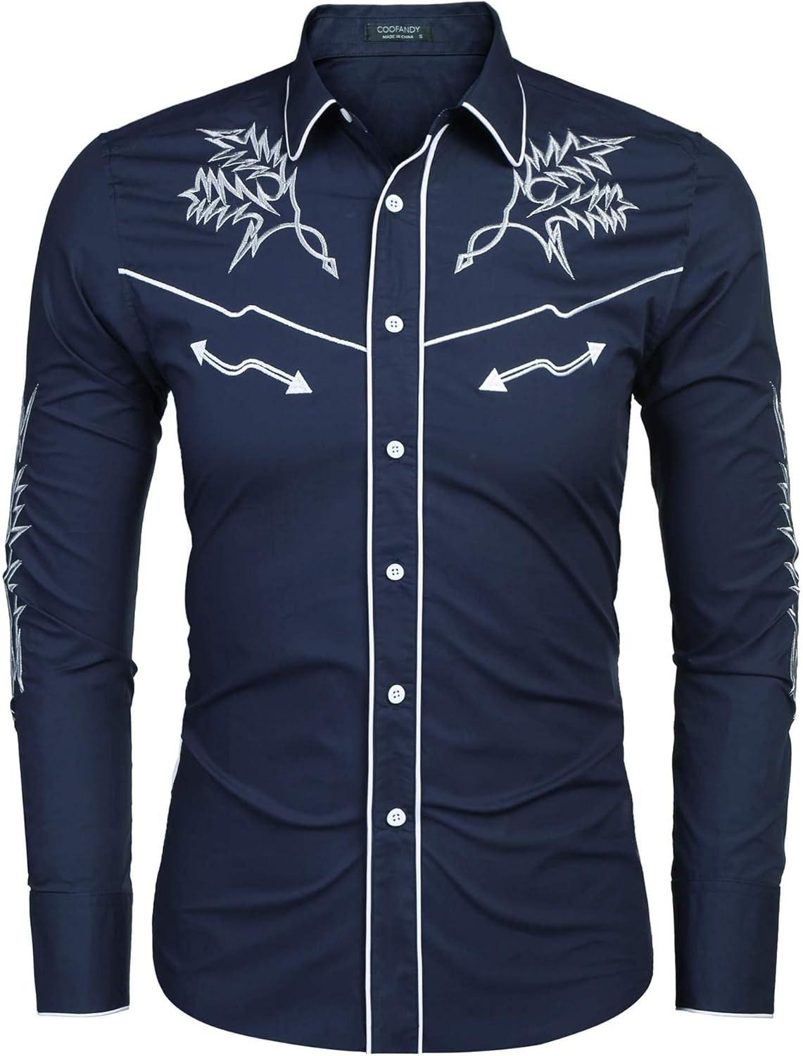 COOFANDY Men's Western Cowboy Shirt Long Sleeve Embroidered Shirt Slim Fit Cotton Casual Button Down Shirt(Blue)