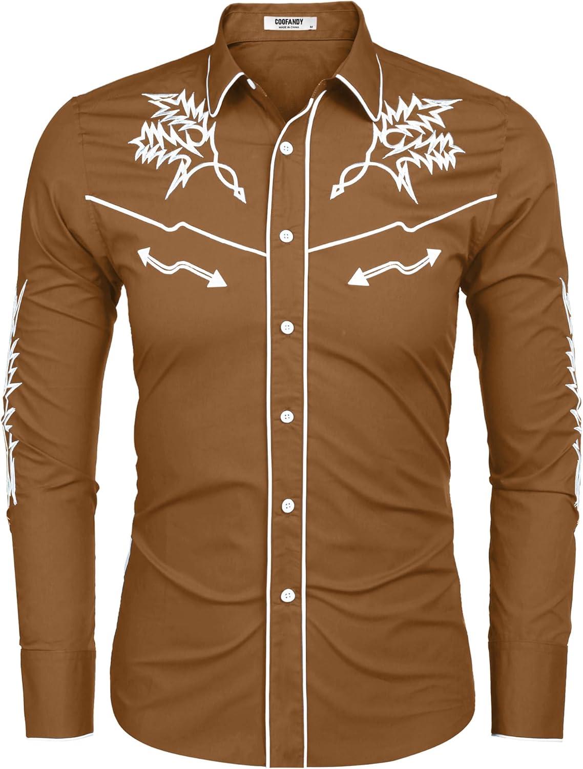 Don’t miss out on our limited-time offer: buy COOFANDY Men’s Western Cowboy Shirt Long Sleeve Embroidered Shirt Slim Fit Cotton Casual Button Down Shirt(Light Brown), get {accessory} 50% off!