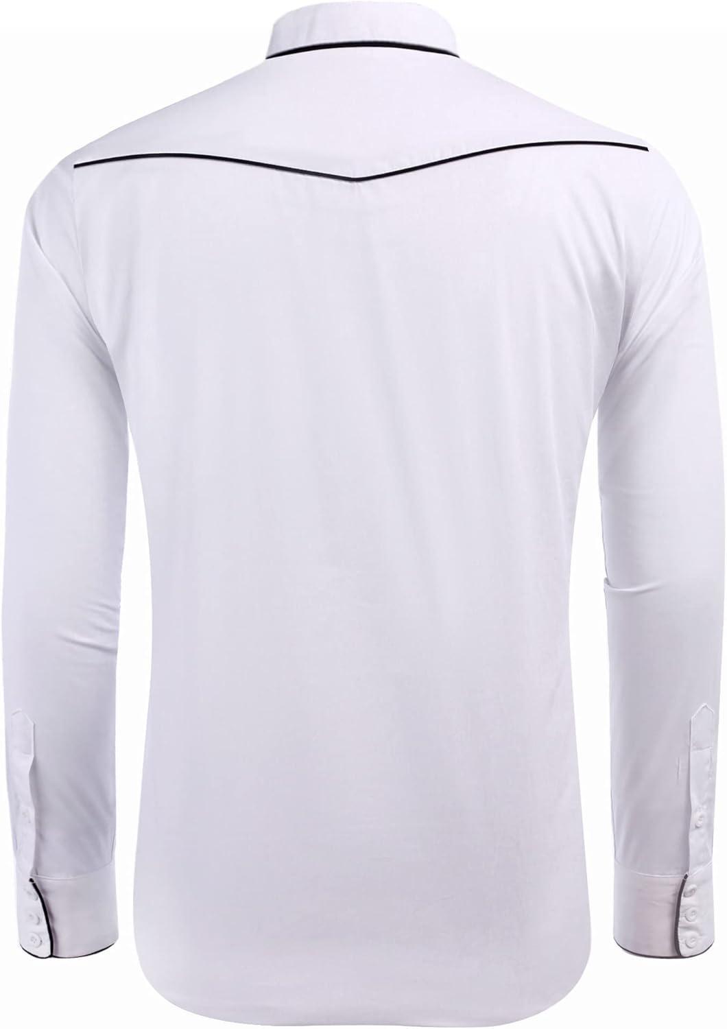 COOFANDY Men’s Western Cowboy Shirt Long Sleeve Embroidered Shirt Slim Fit Cotton Casual Button Down Shirt(White)