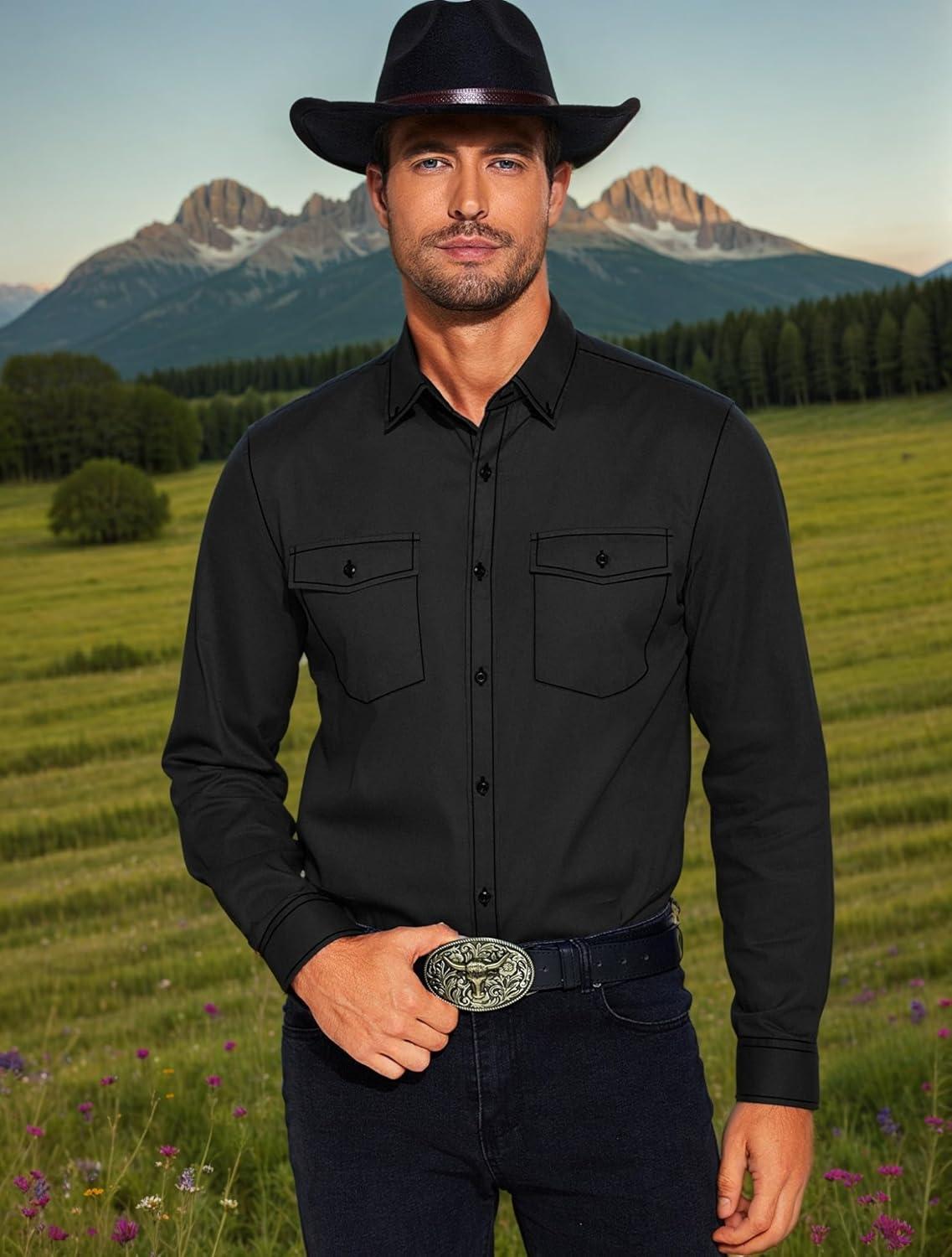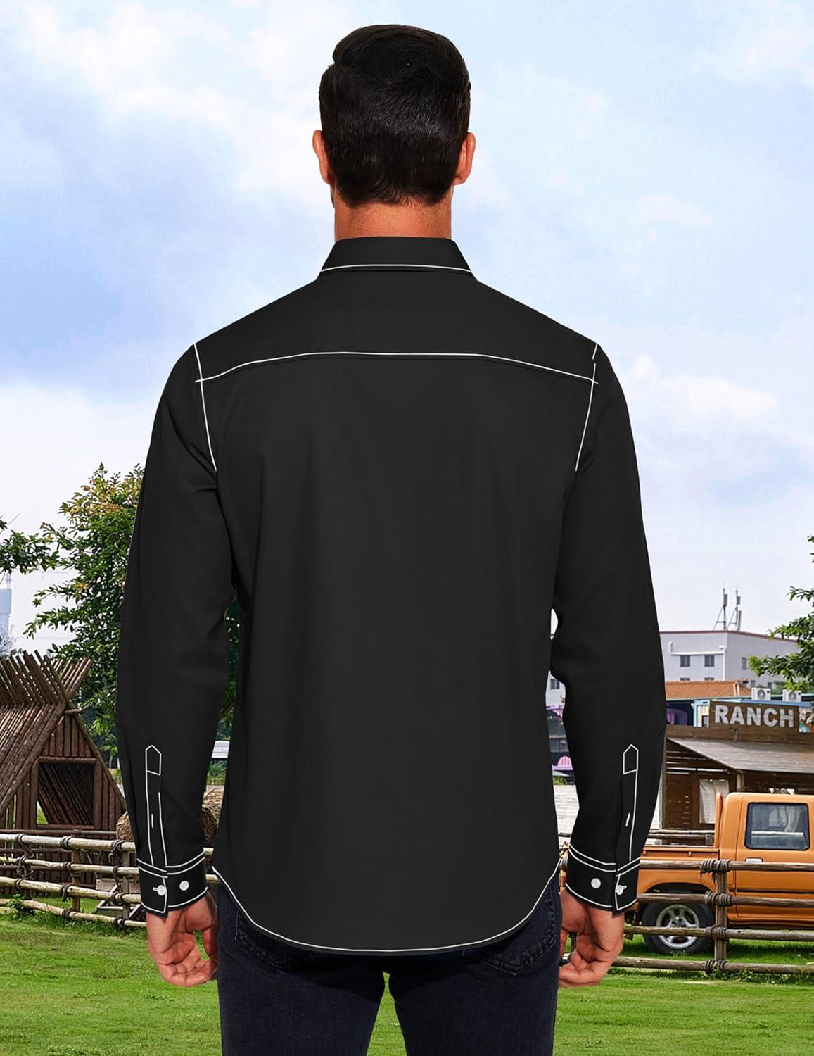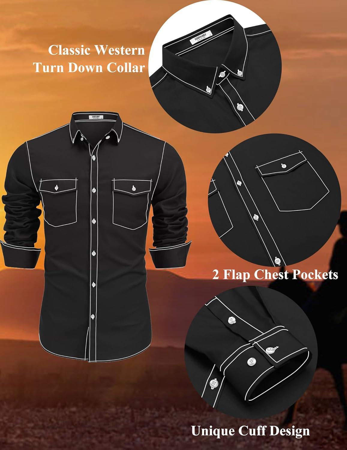COOFANDY Mens Western Cowboy Shirts Cotton Long Sleeve Shirts with Two Pockets Embroidered(A-black)