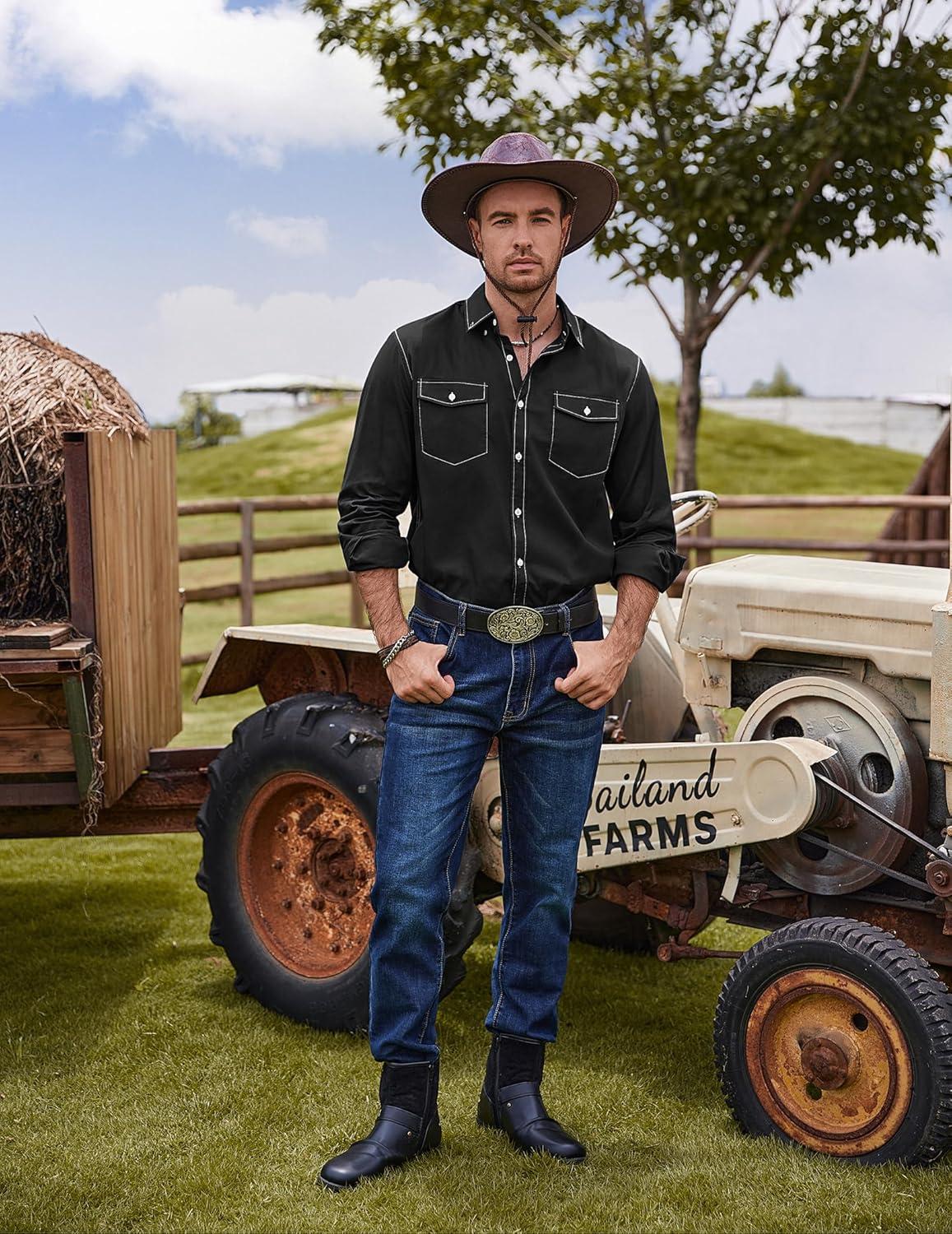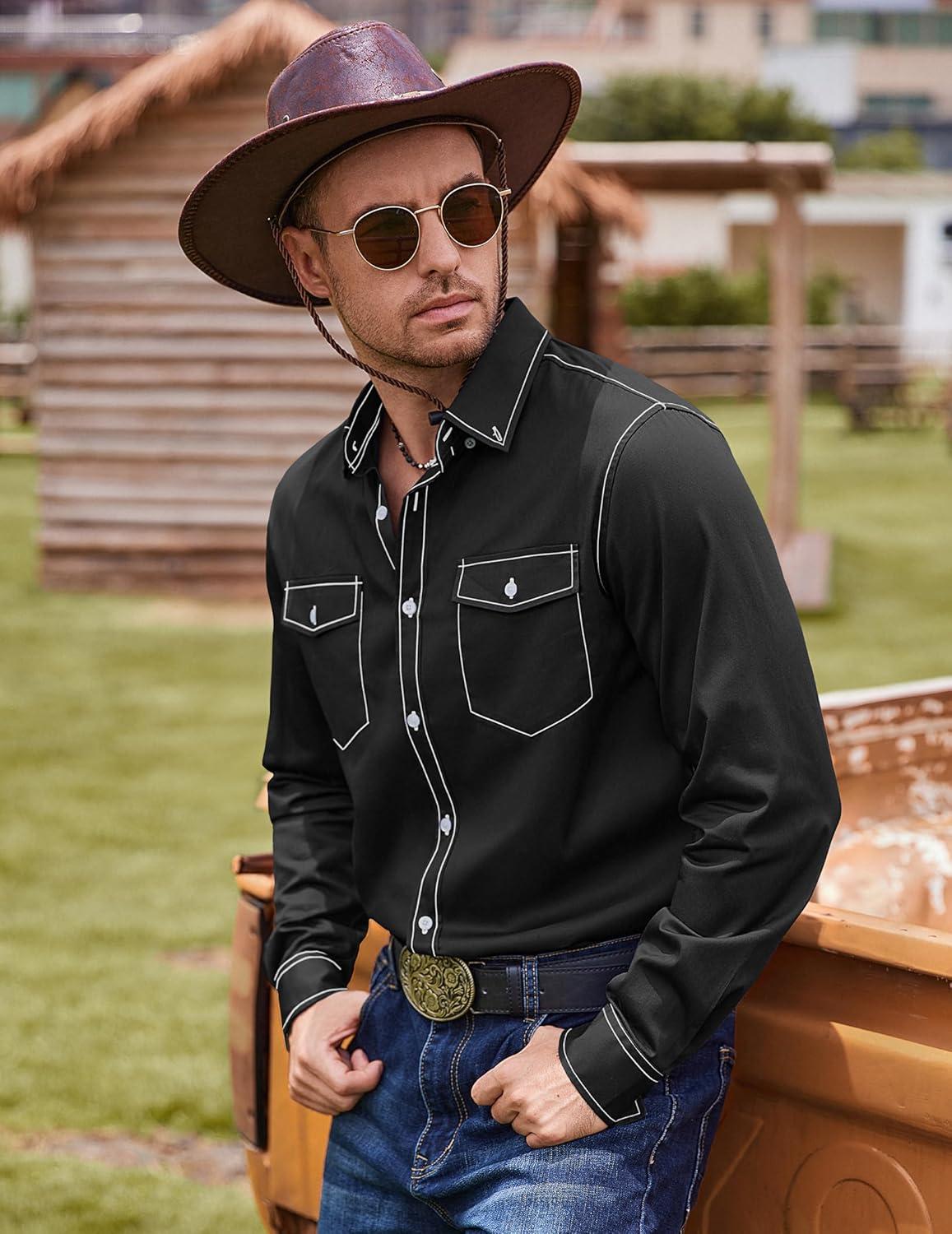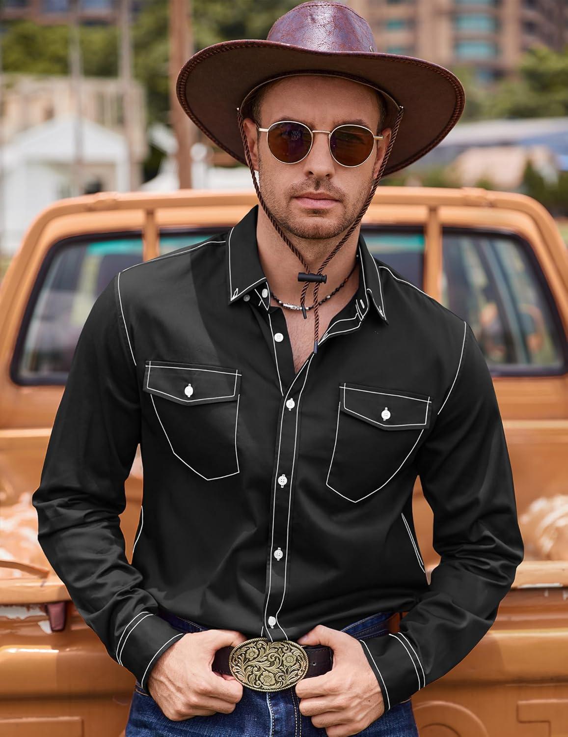 COOFANDY Mens western cowboy shirt casual long sleeve button down shirt with two pockets vintage cowboy button up shirts lightweight summer beach clothes for men autumn evening