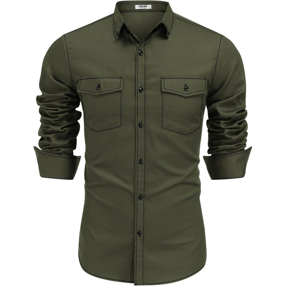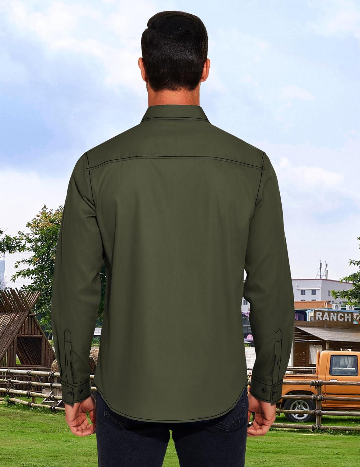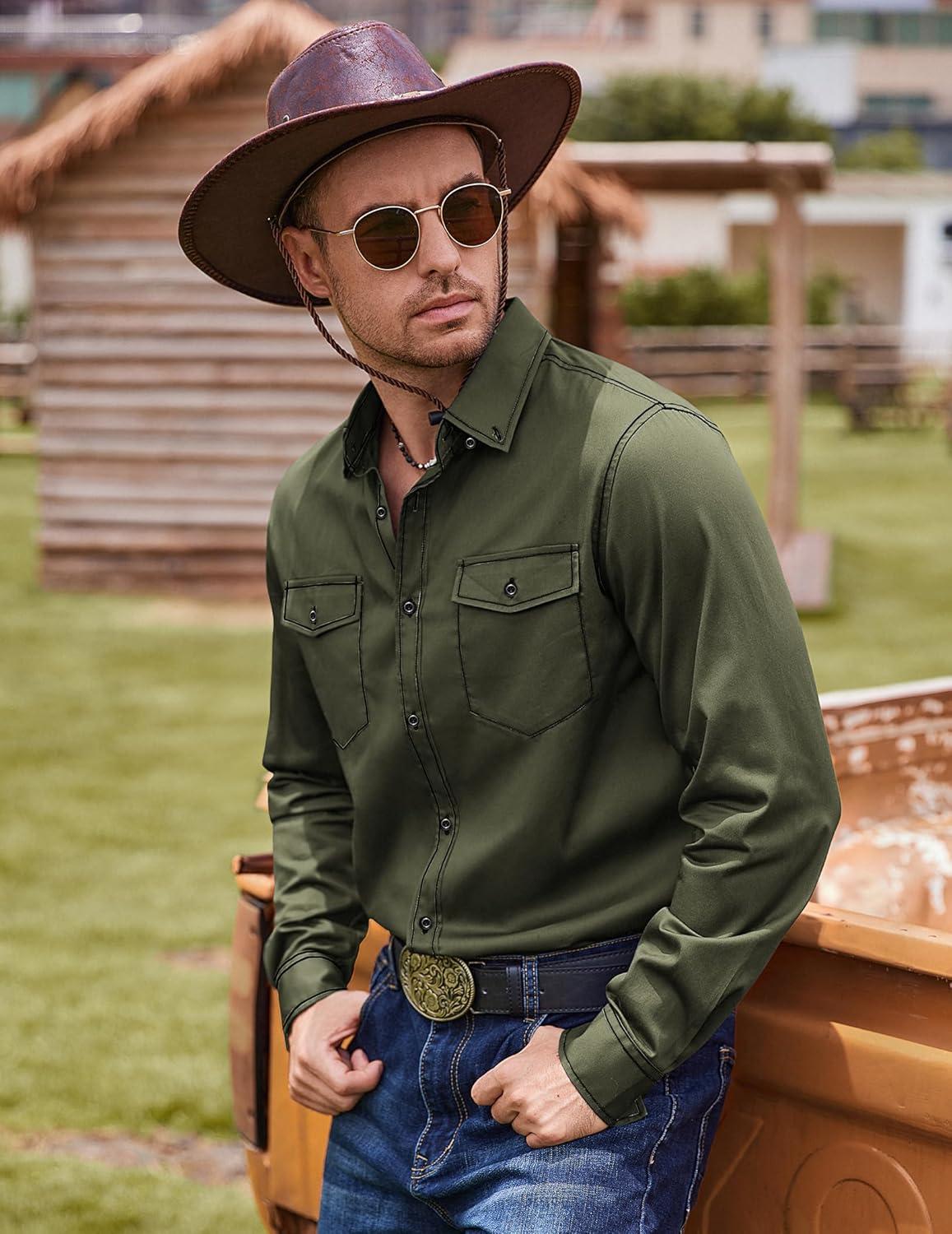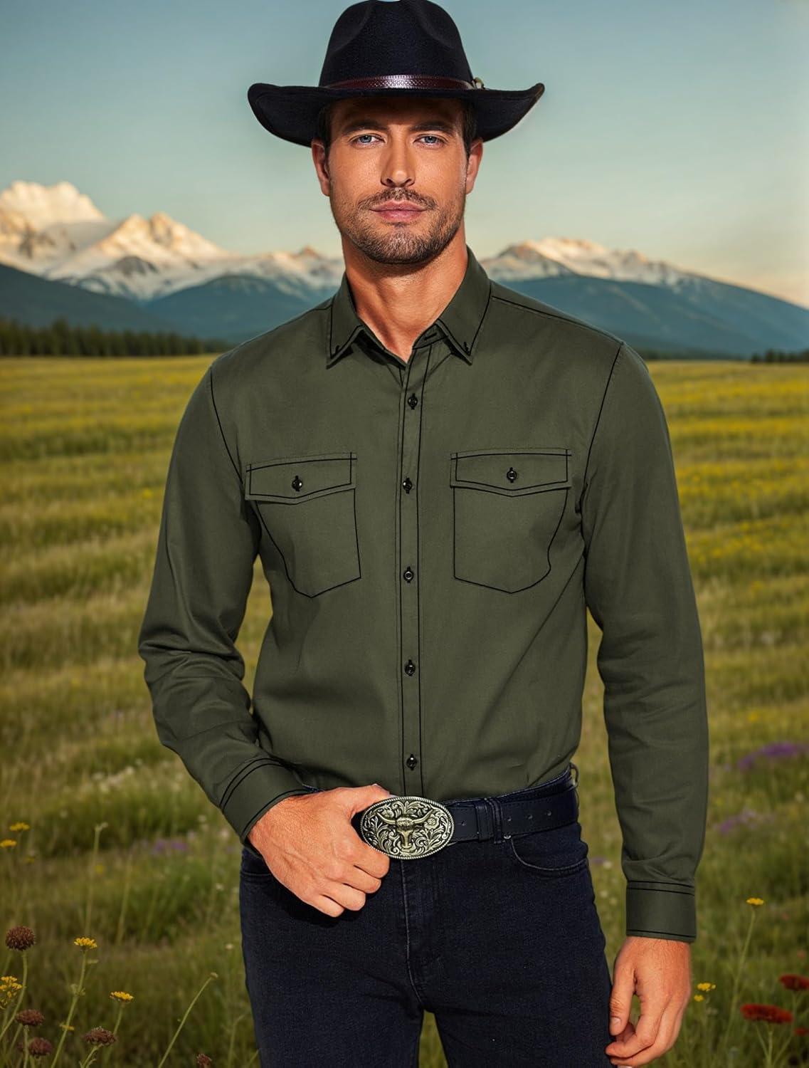 COOFANDY Mens Western Cowboy Shirts Cotton Long Sleeve Shirts with Two Pockets Embroidered(Army Green)