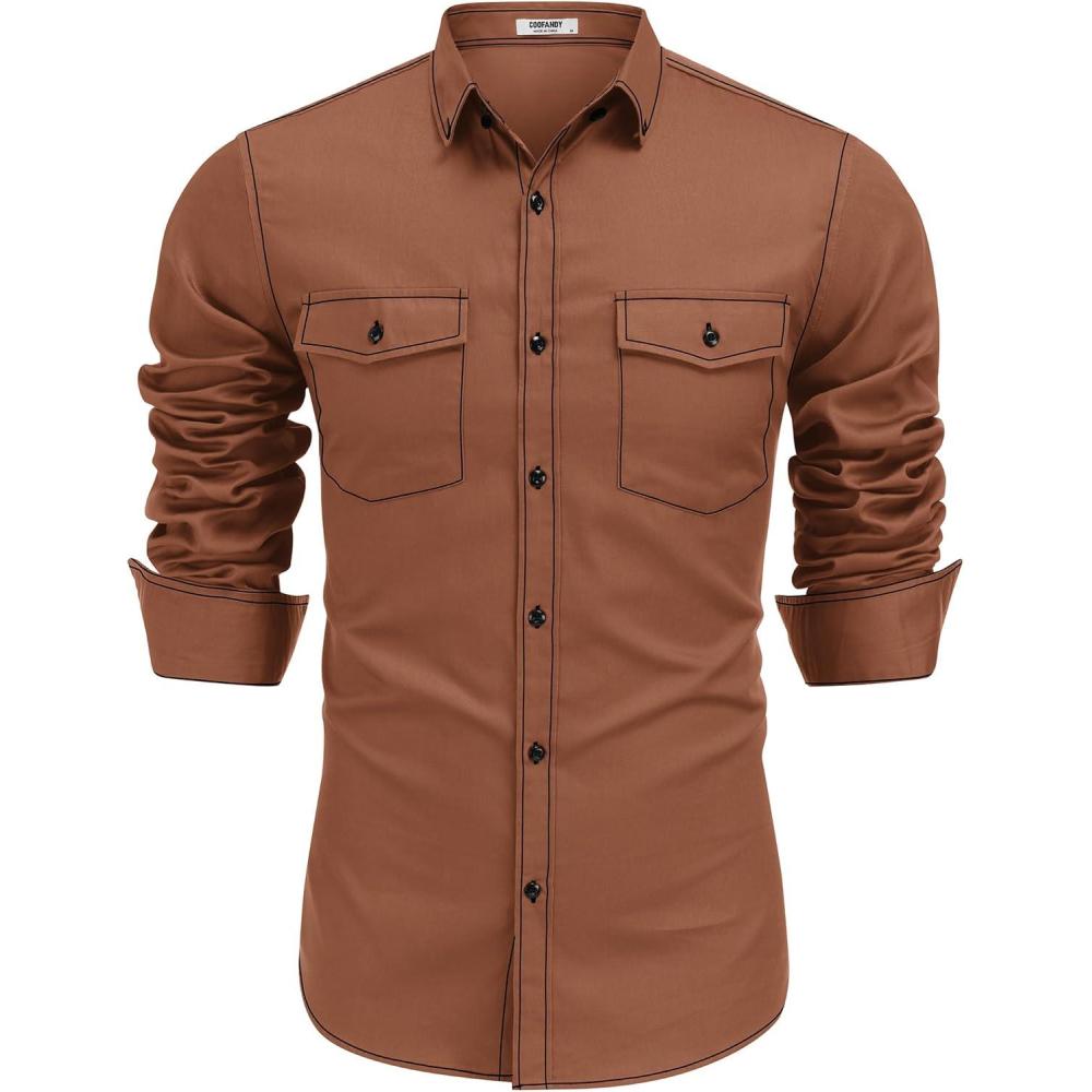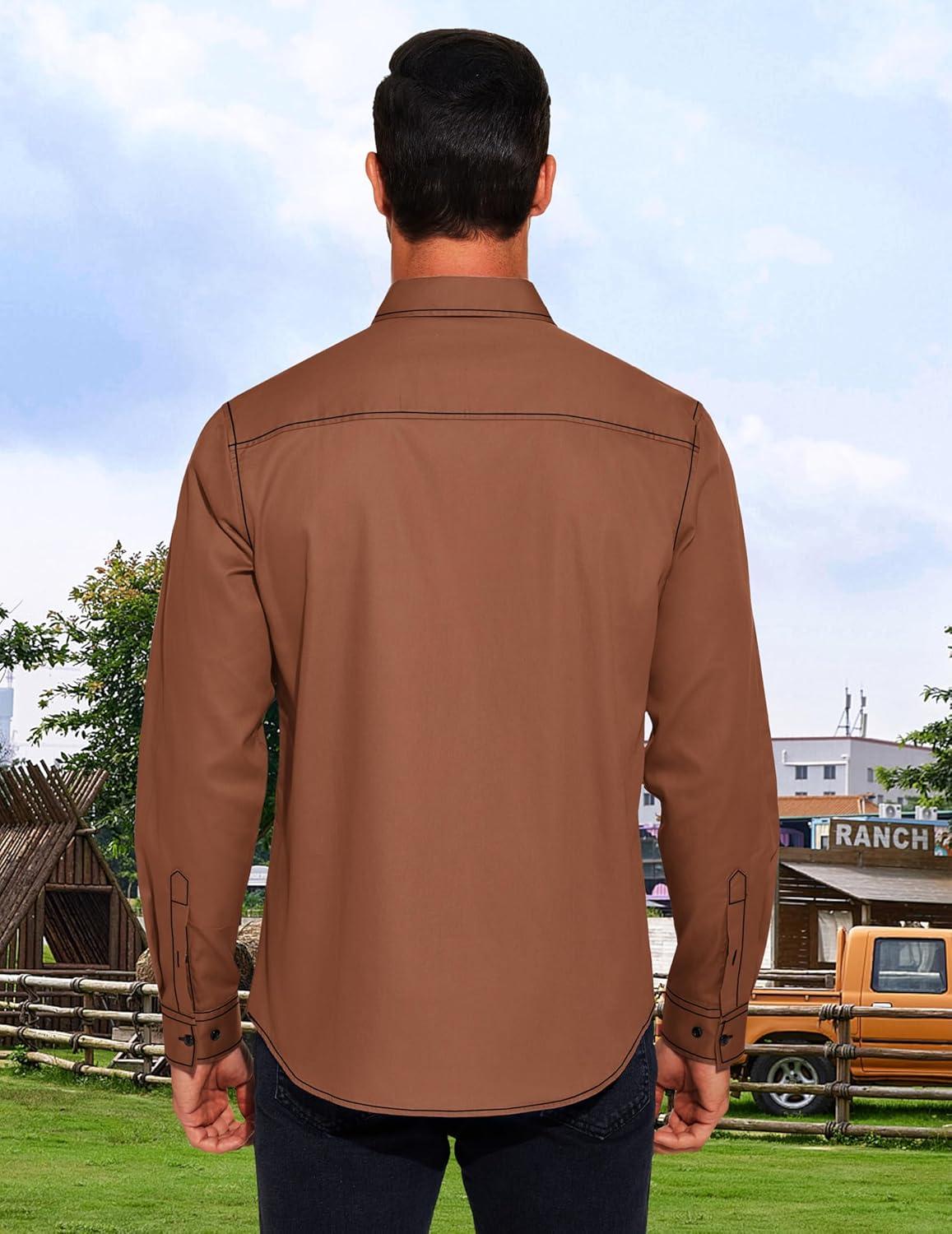 imageCOOFANDY Mens Western Cowboy Shirts Cotton Long Sleeve Shirts with Two Pockets EmbroideredLight Brown