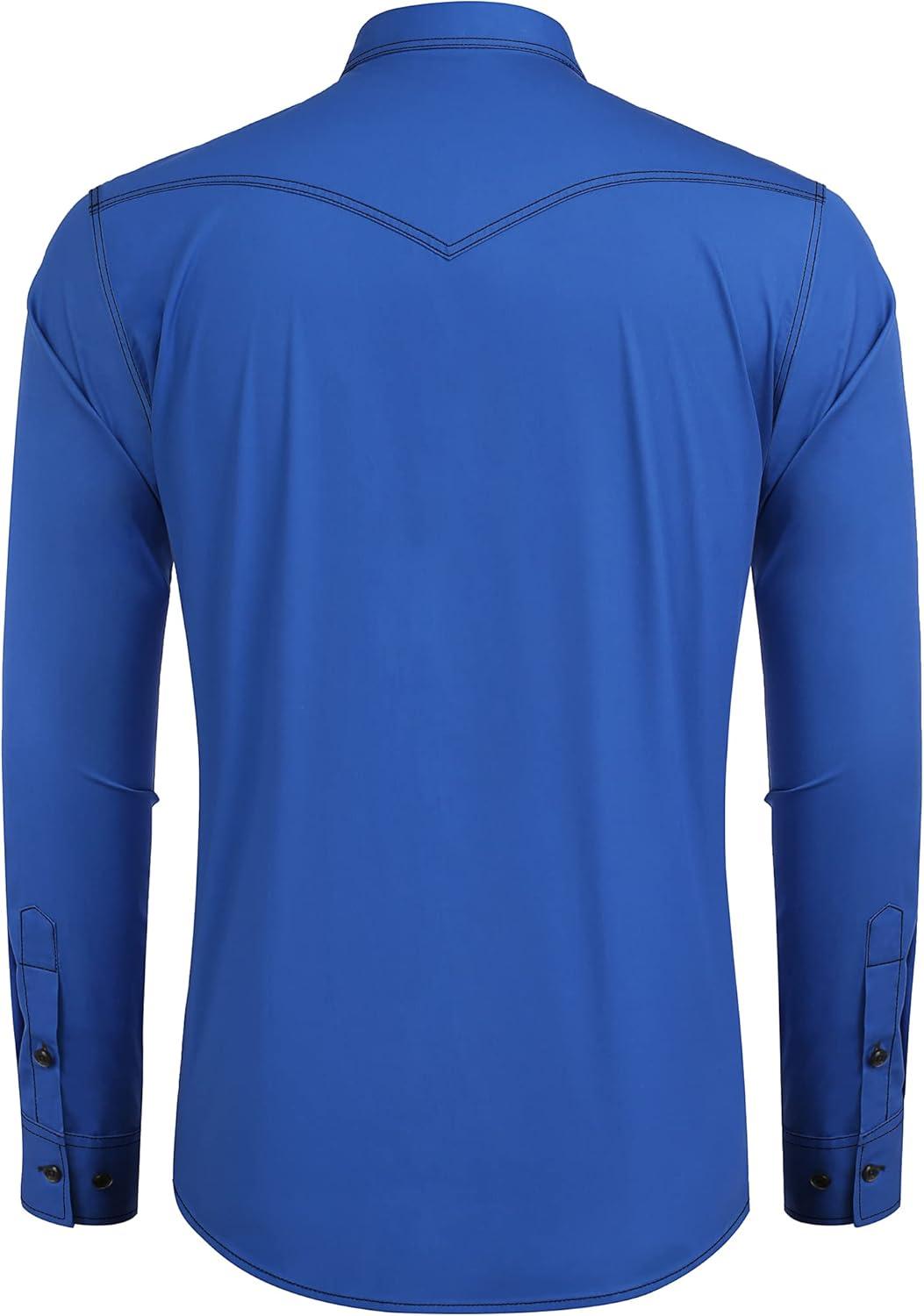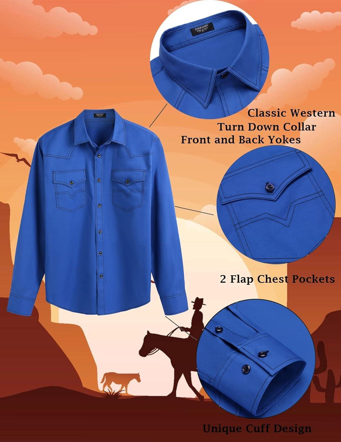 COOFANDY Men's Western Cowboy Shirts Long Sleeve Cotton Casual Button Down Work Shirt with Pockets(French Blue)