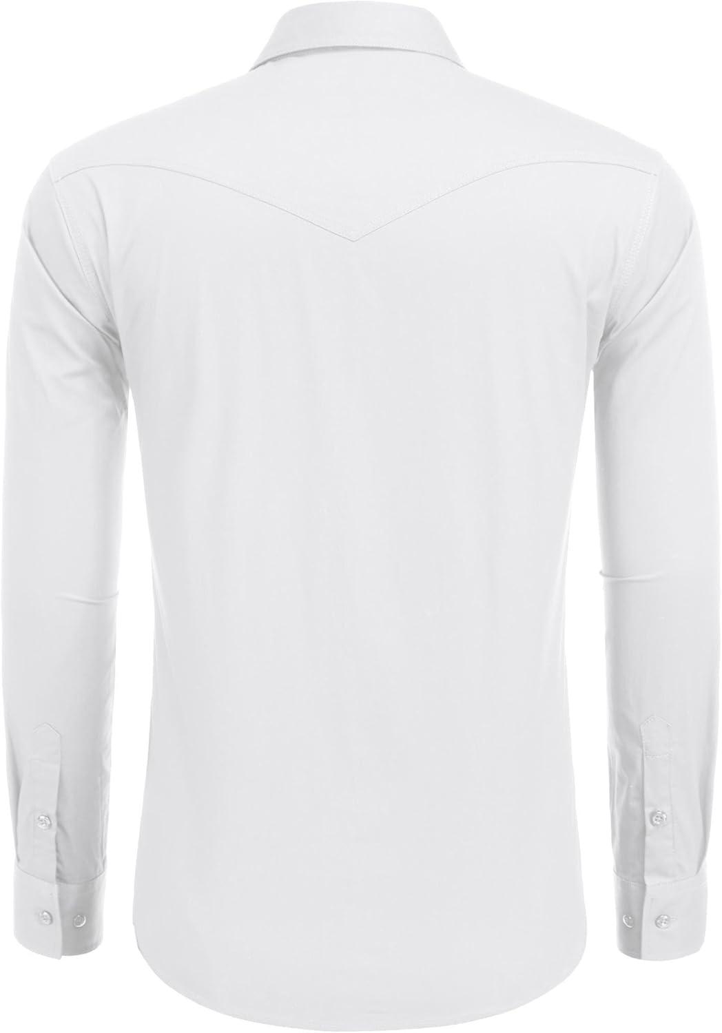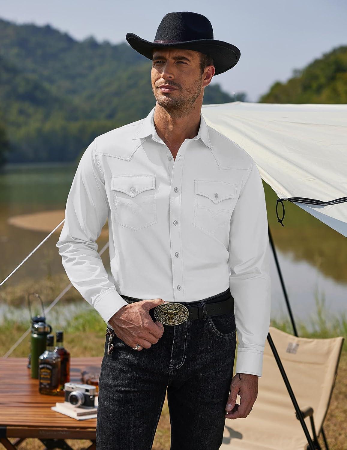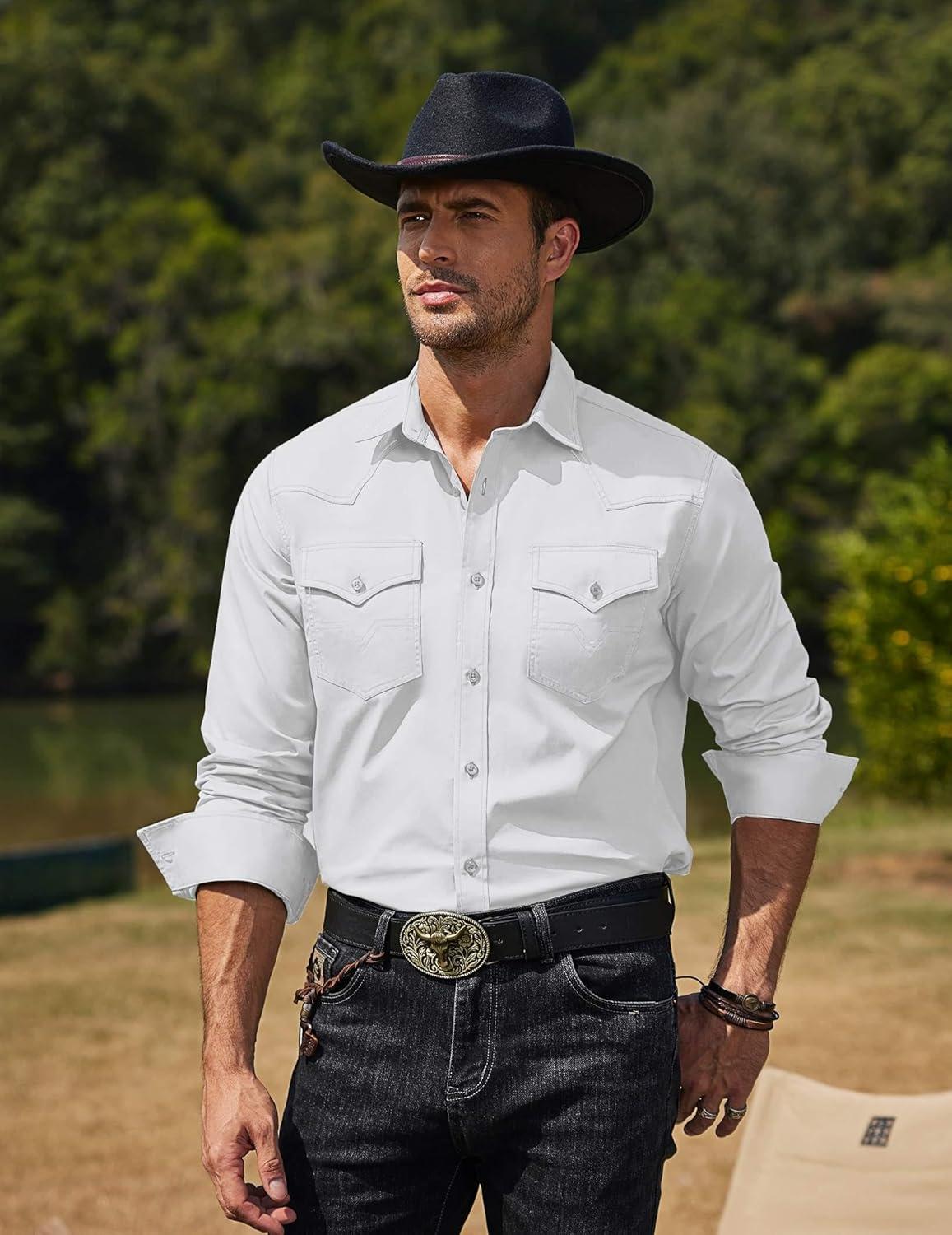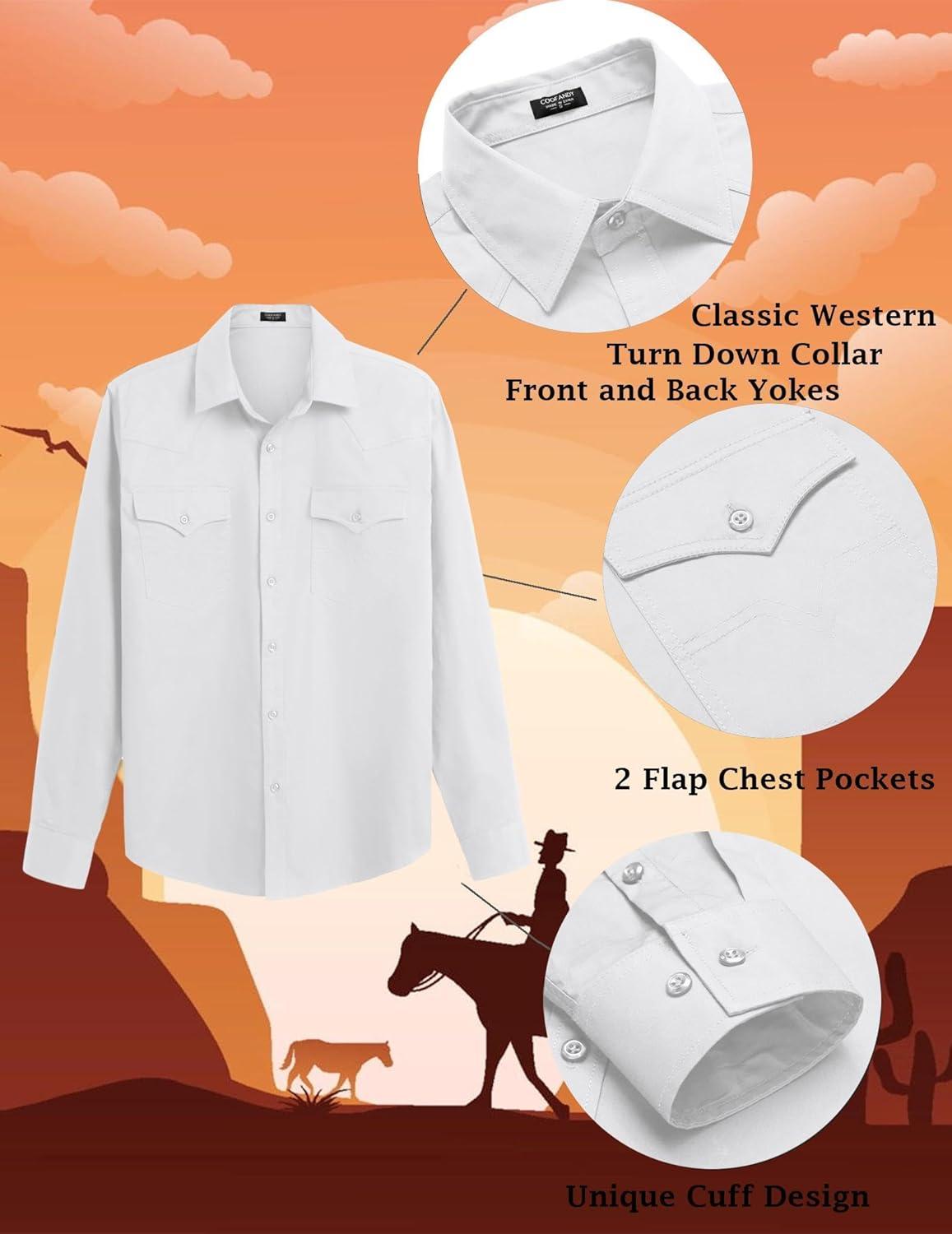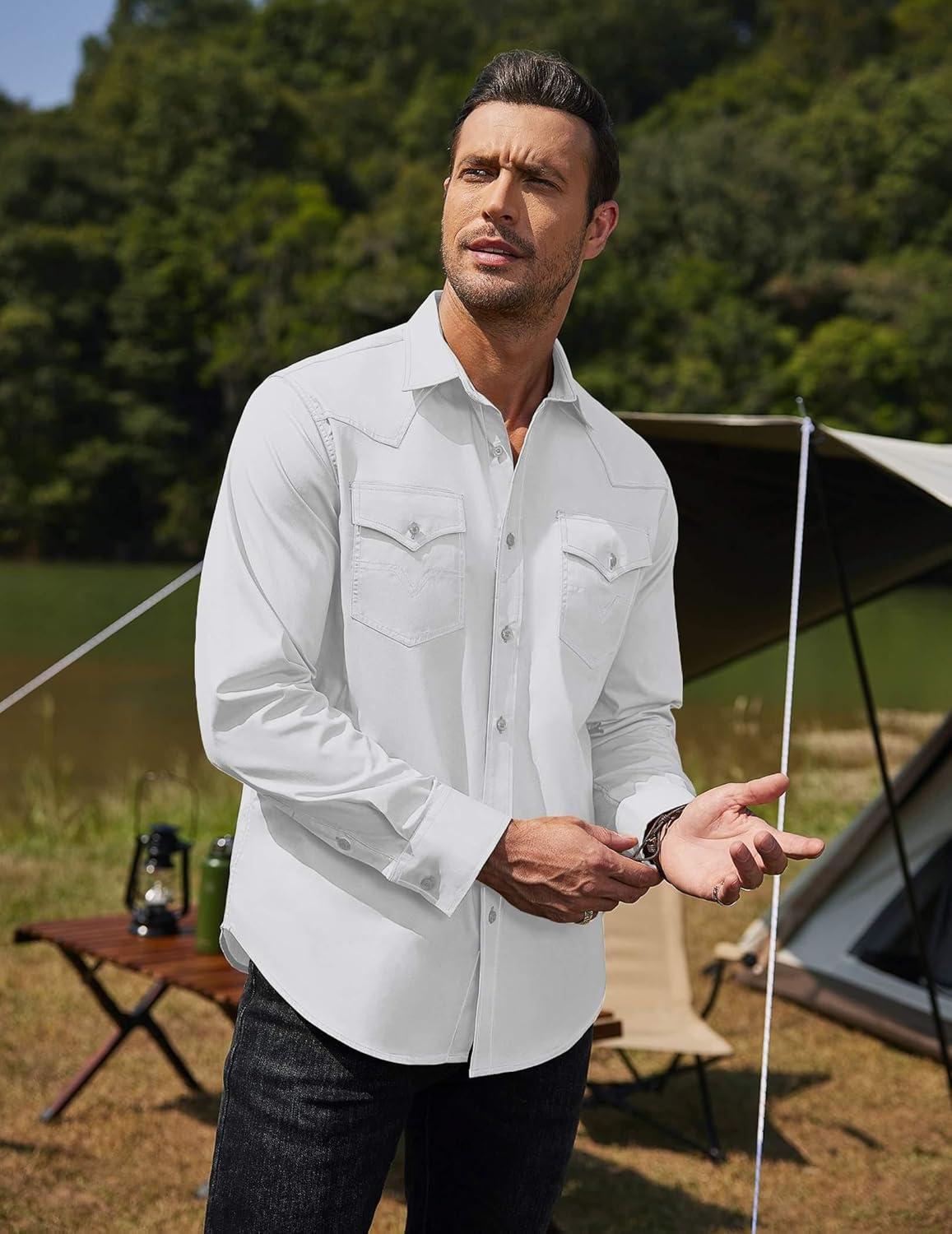 COOFANDY Men's Western Cowboy Shirts Long Sleeve Cotton Casual Button Down Work Shirt with Pockets(Solid White)