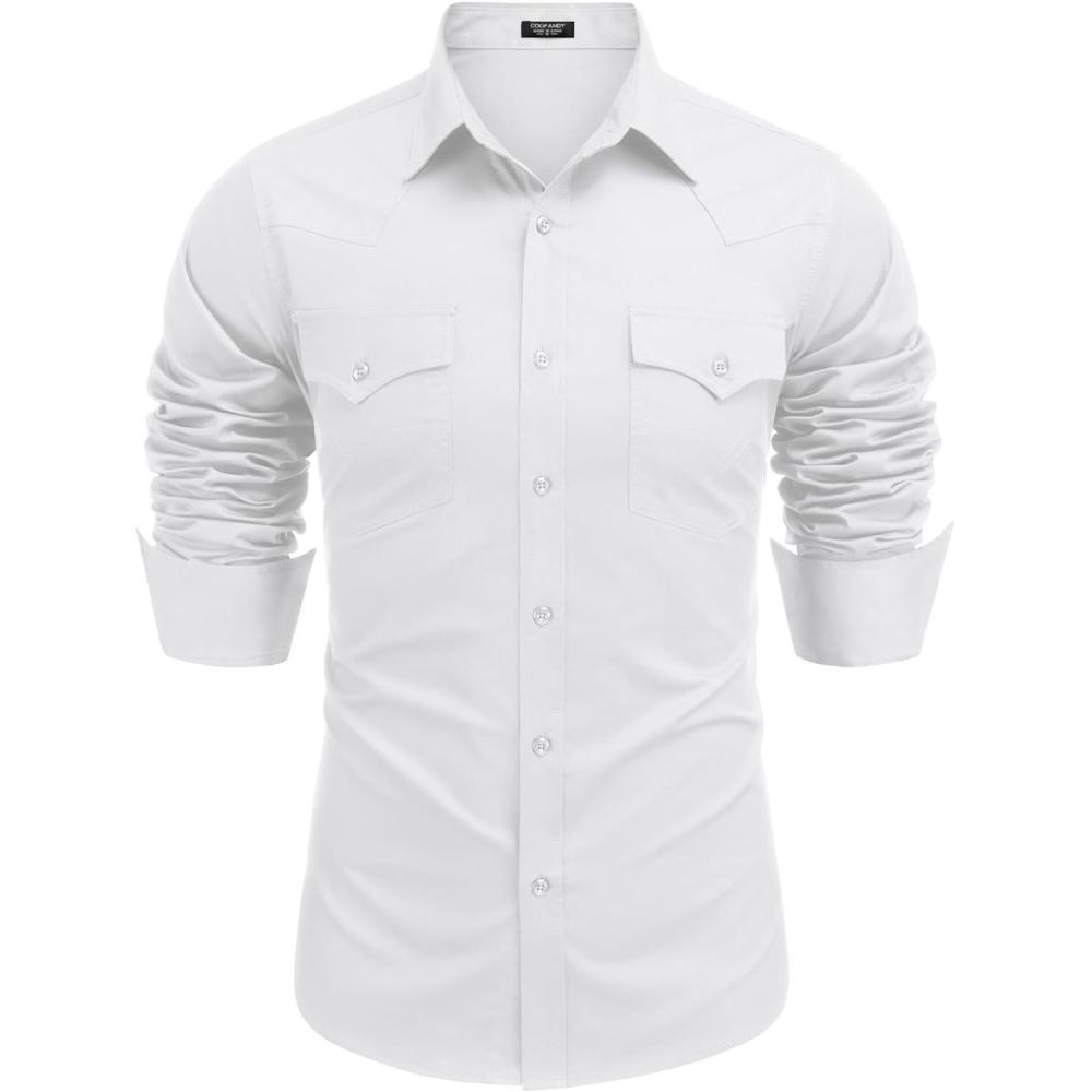 COOFANDY Men’s Western Cowboy Shirts Long Sleeve Cotton Casual Button Down Work Shirt with Pockets(Solid White)