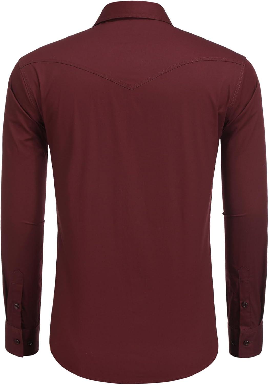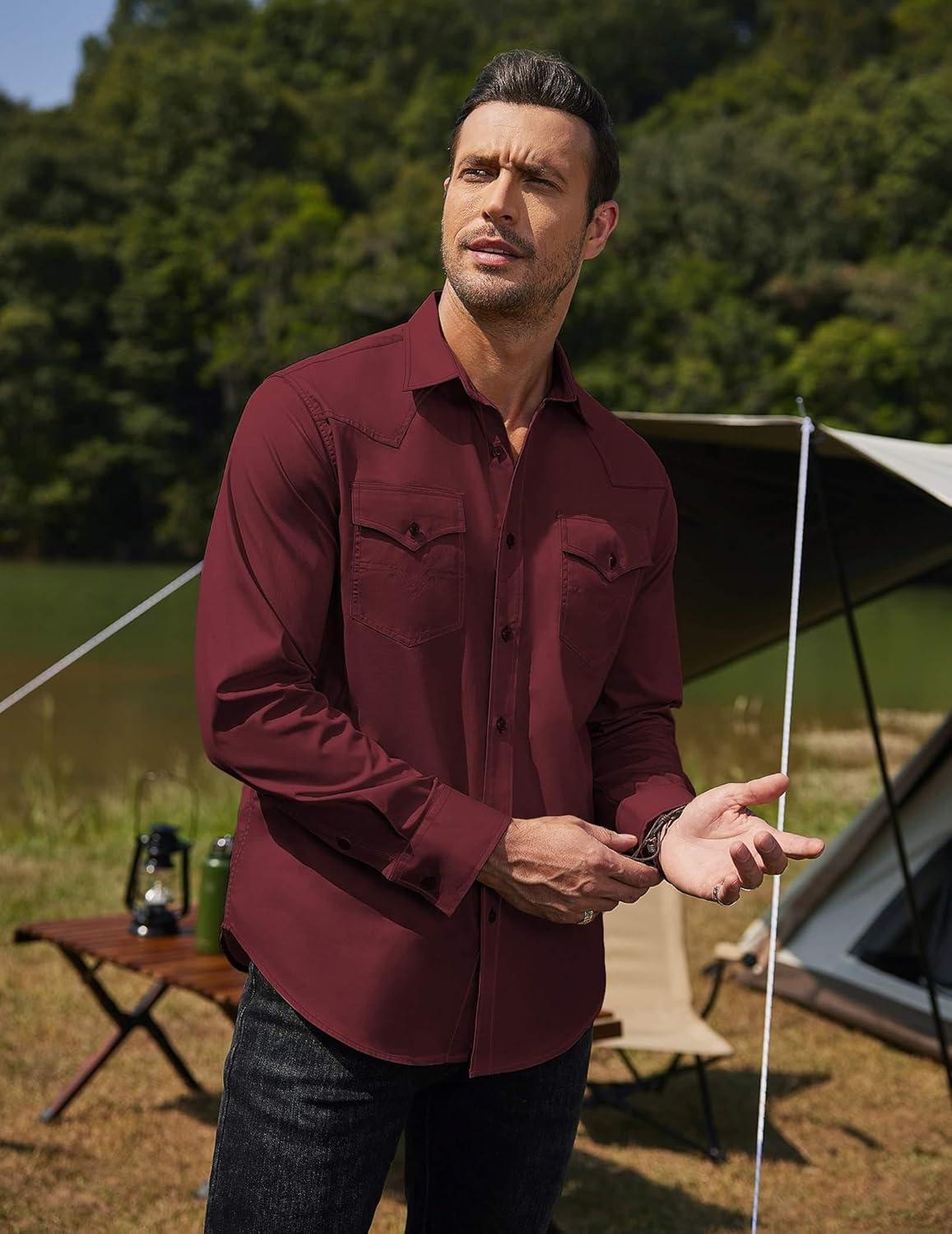 COOFANDY Men's Western Cowboy Shirts Long Sleeve Cotton Casual Button Down Work Shirt with Pockets(Solid Wine Red)
