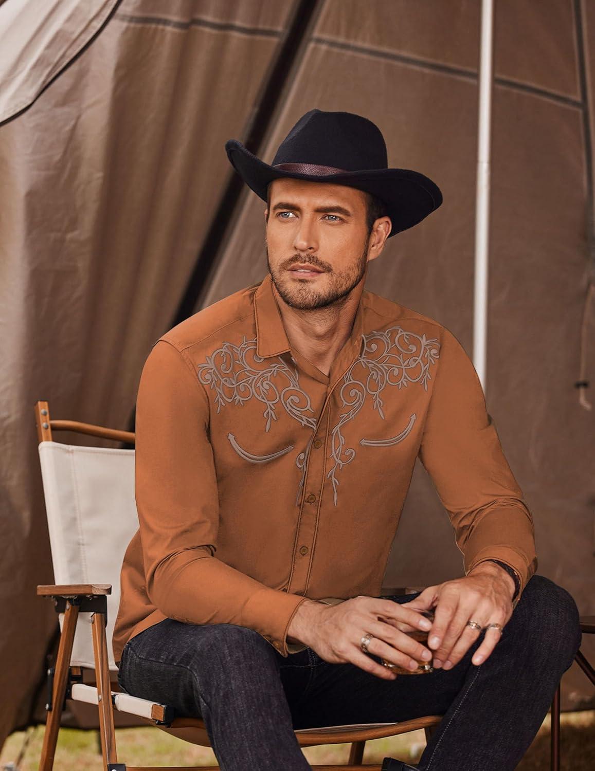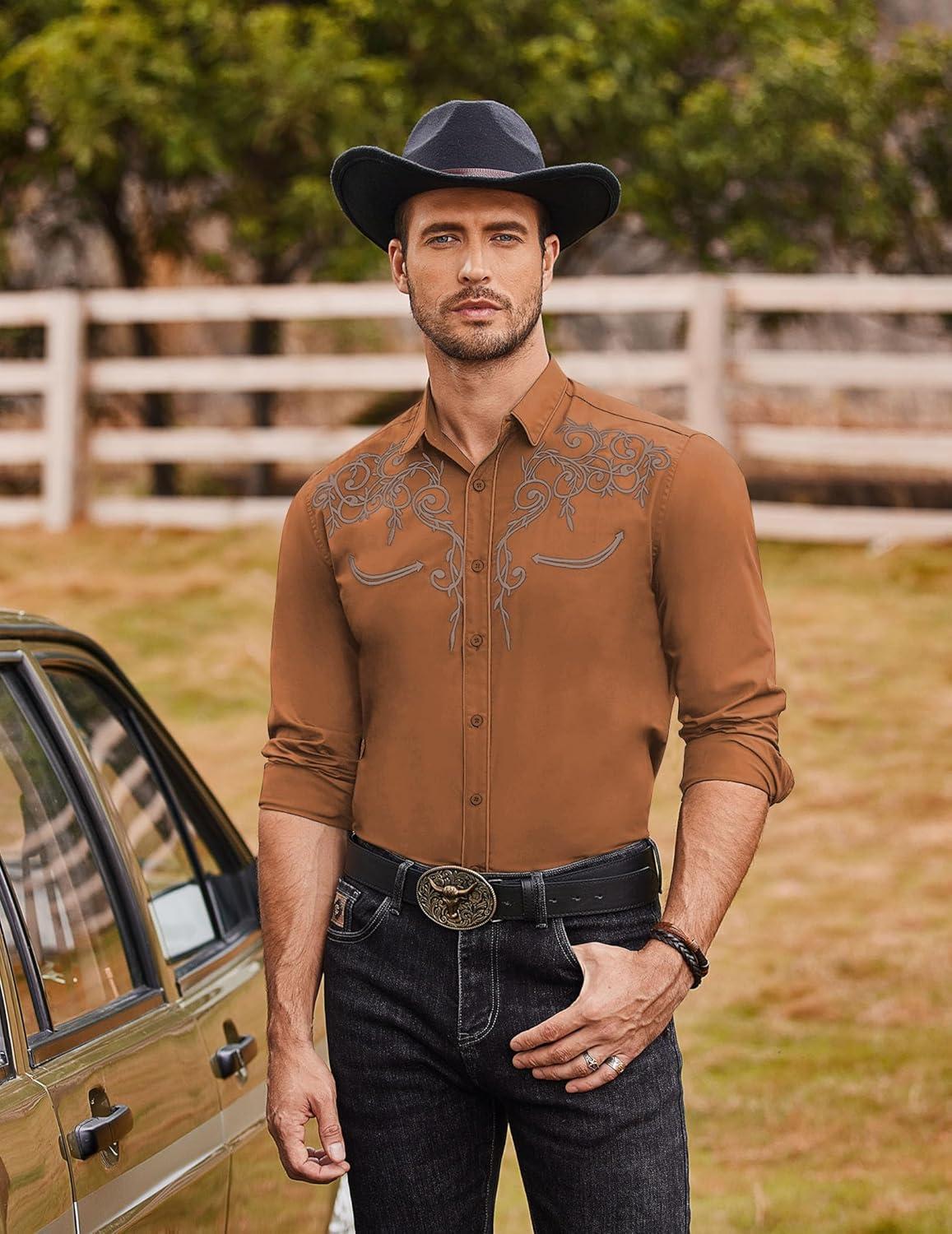 COOFANDY Men's Western Cowboy Shirts Long Sleeve Embroidered Shirt Slim Fit Casual Button Down Shirts(Br2)