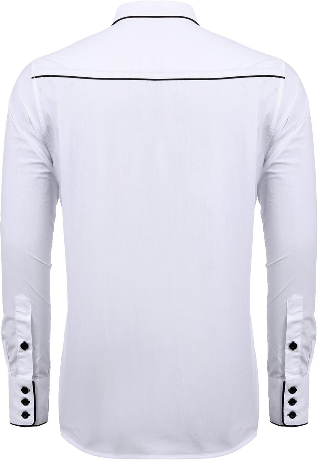 COOFANDY Men’s Western Cowboy Shirts Long Sleeve Embroidered Shirt Slim Fit Casual Button Down Shirts(White)