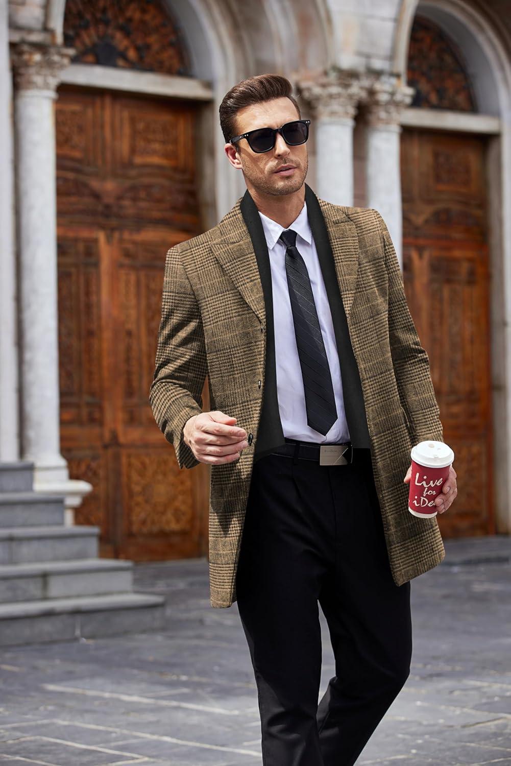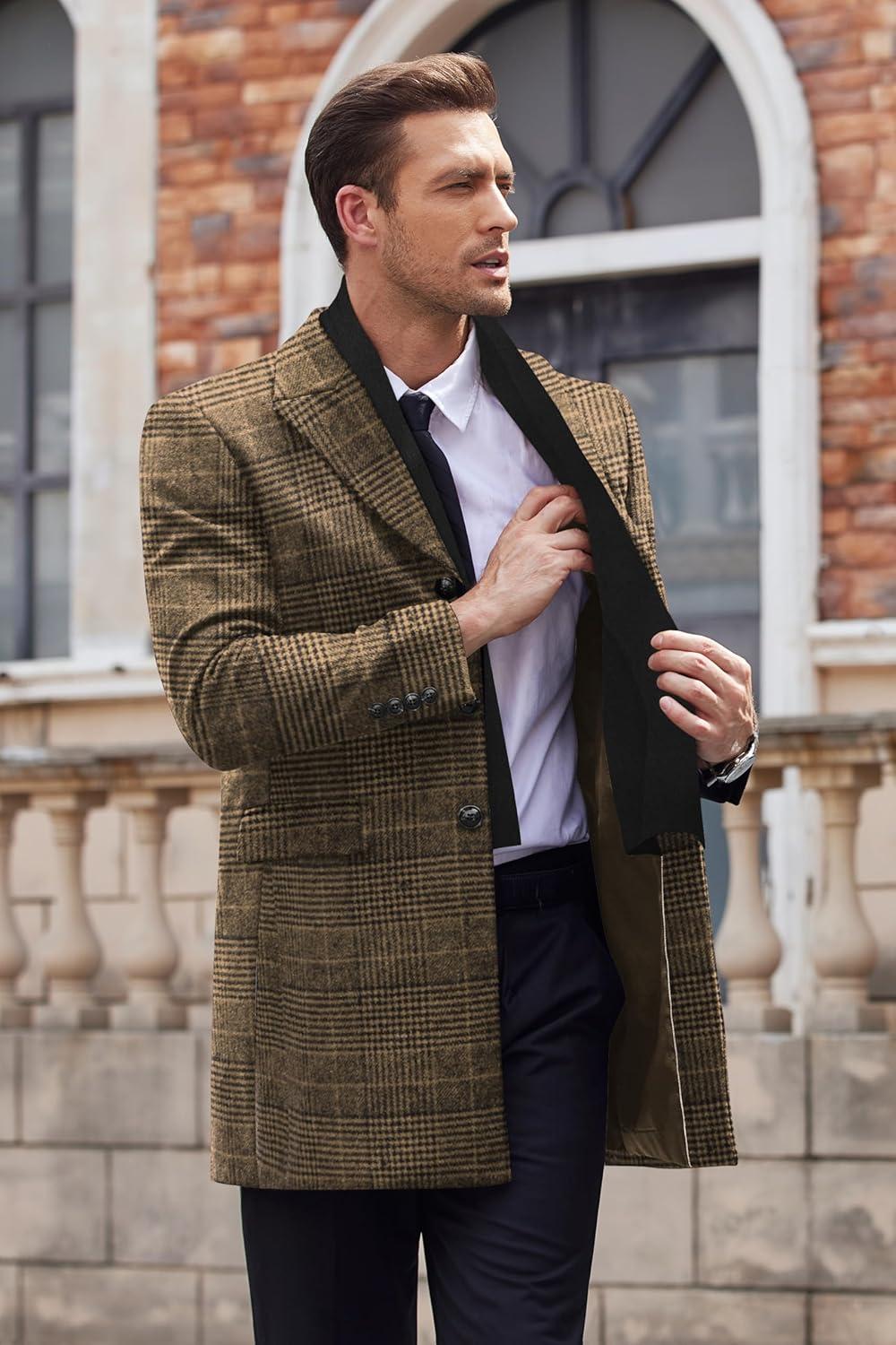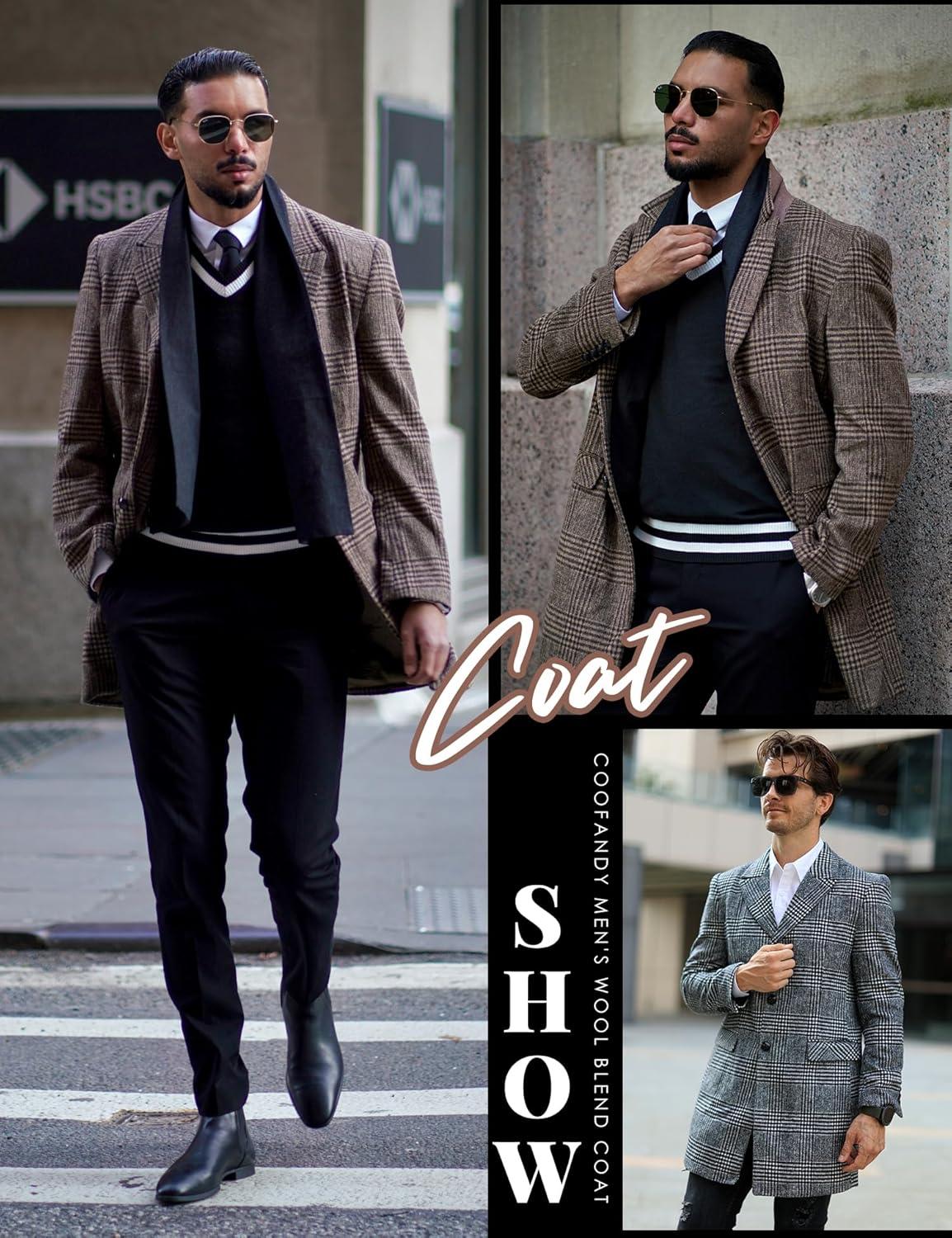 Get up to 60% off on COOFANDY Men’s Wool Blend Coat with Detachable Plaid Scarfs Notched Collar Single Breasted Pea Coat Trench Overcoat(Brown Plaid) styles during our winter sale event.