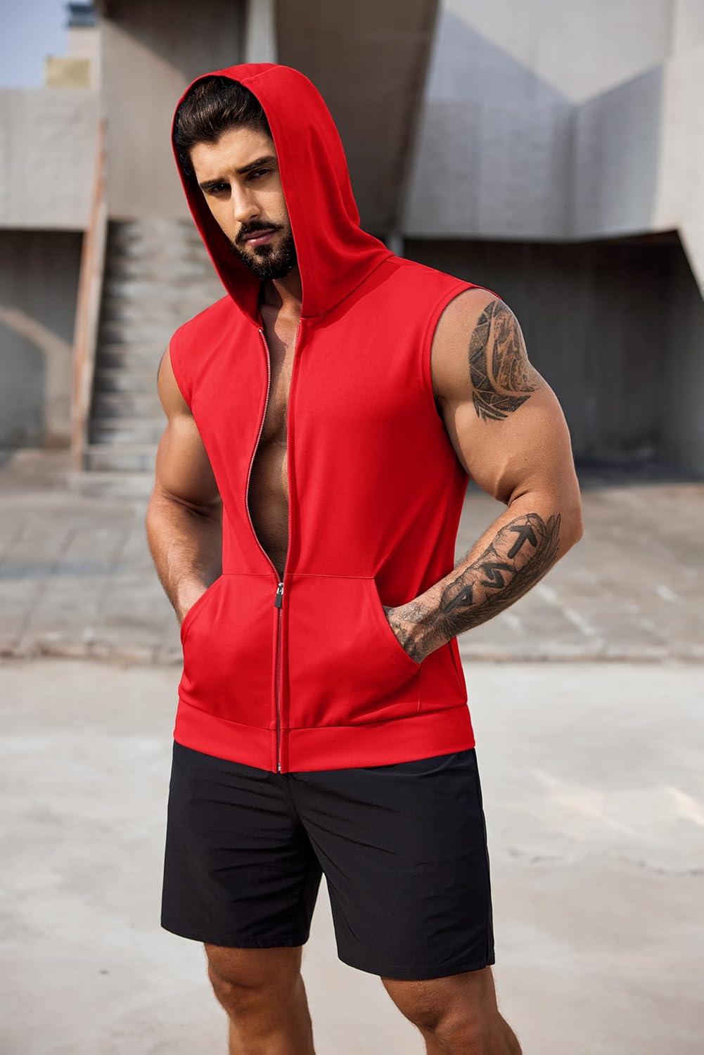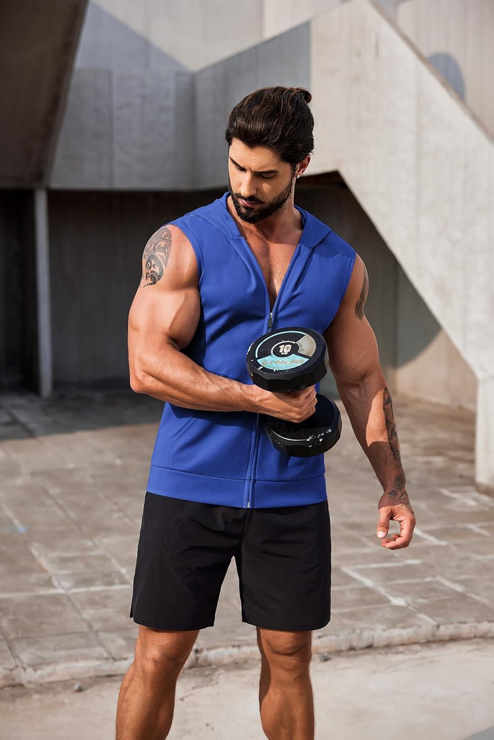 COOFANDY Men's Workout Hooded Tank Tops 2 Pack Zip Up Sleeveless Gym Shirts Muscle Cut Off T Shirt Bodybuilding Hoodies(Blue/Red(2pcs))