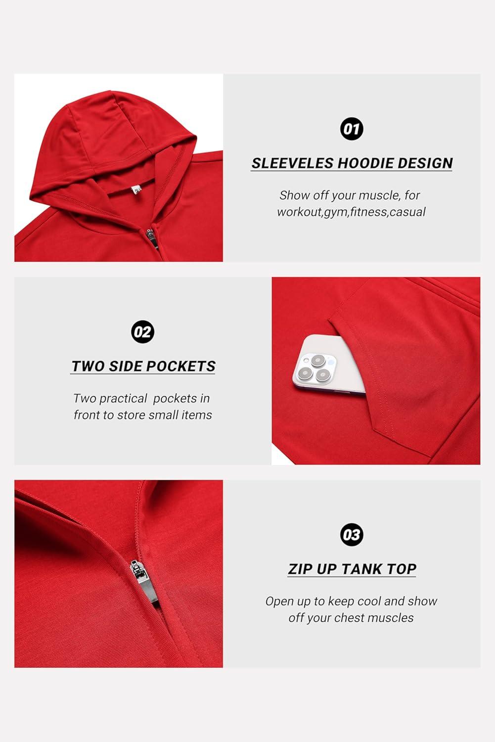 COOFANDY Men’s Workout Hooded Tank Tops 2 Pack Zip Up Sleeveless Gym Shirts Muscle Cut Off T Shirt Bodybuilding Hoodies(Blue/Red(2pcs))