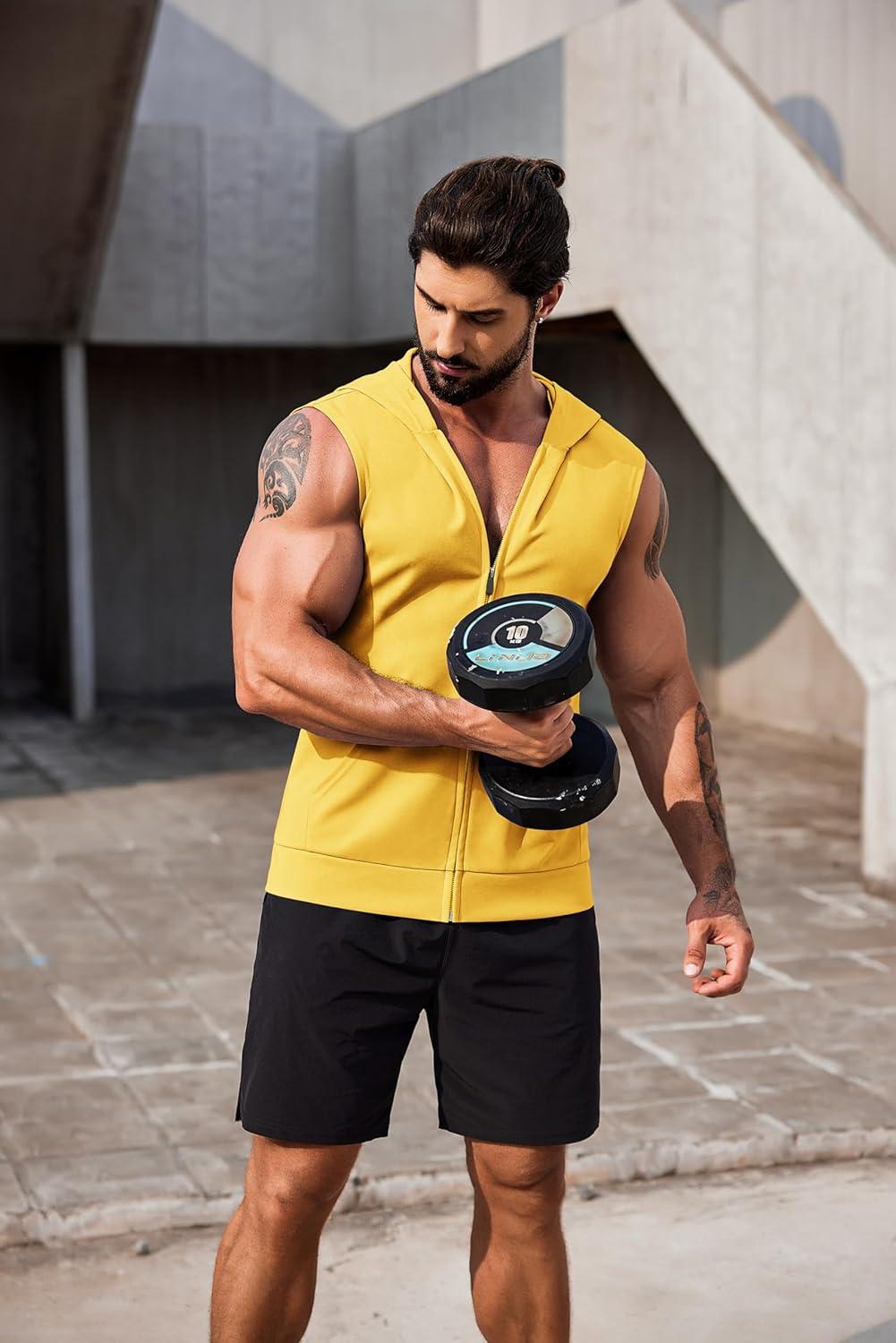 COOFANDY Men's Workout Hooded Tank Tops 2 Pack Zip Up Sleeveless Gym Shirts Muscle Cut Off T Shirt Bodybuilding Hoodies(Yellow)