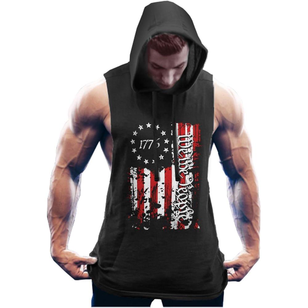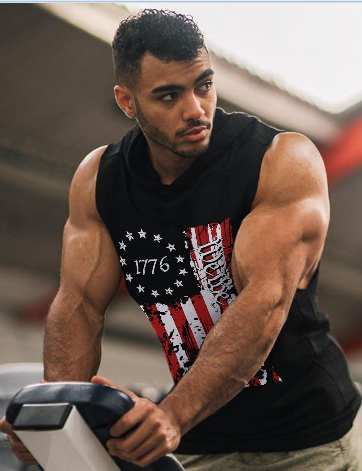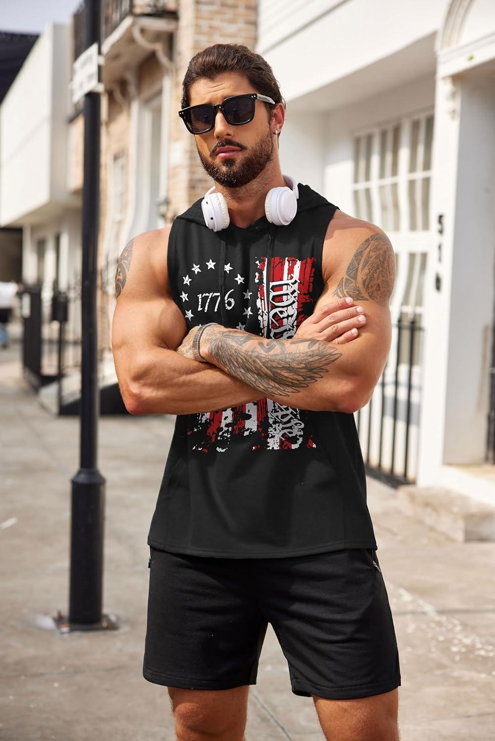 COOFANDY Men's Workout Hooded Tank Tops Bodybuilding Muscle Cut Off T Shirt Sleeveless Gym Hoodies(1flag-black)