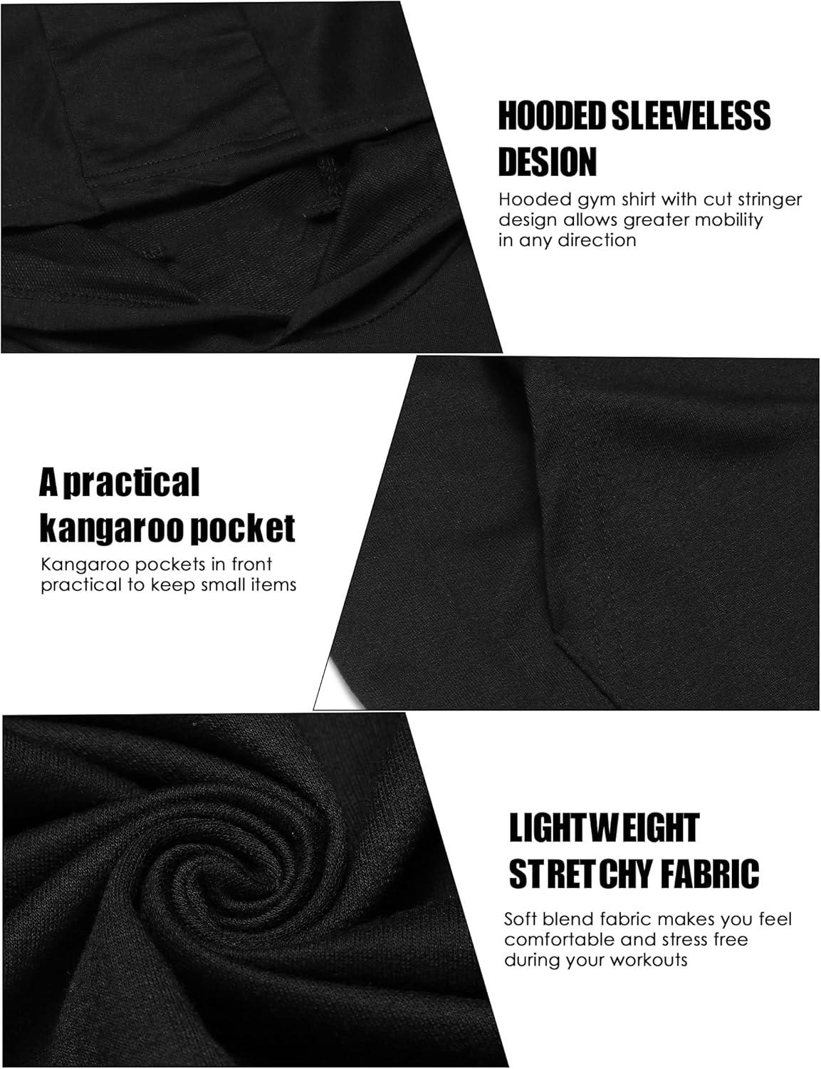 COOFANDY Men’s Workout Hooded Tank Tops Bodybuilding Muscle Cut Off T Shirt Sleeveless Gym Hoodies(Black)