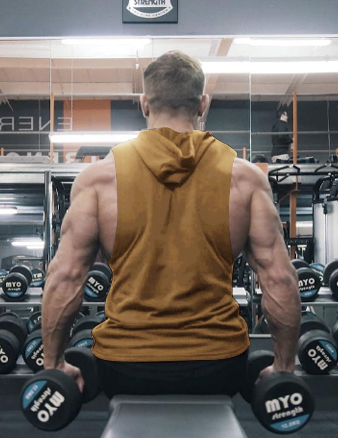 COOFANDY Men’s Workout Hooded Tank Tops Bodybuilding Muscle Cut Off T Shirt Sleeveless Gym Hoodies(Yellow)