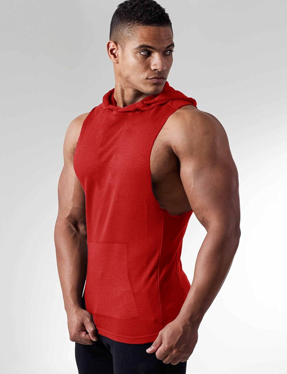 COOFANDY Men’s Workout Hooded Tank Tops Bodybuilding Muscle Cut Off T Shirt Sleeveless Gym Hoodies(Red)