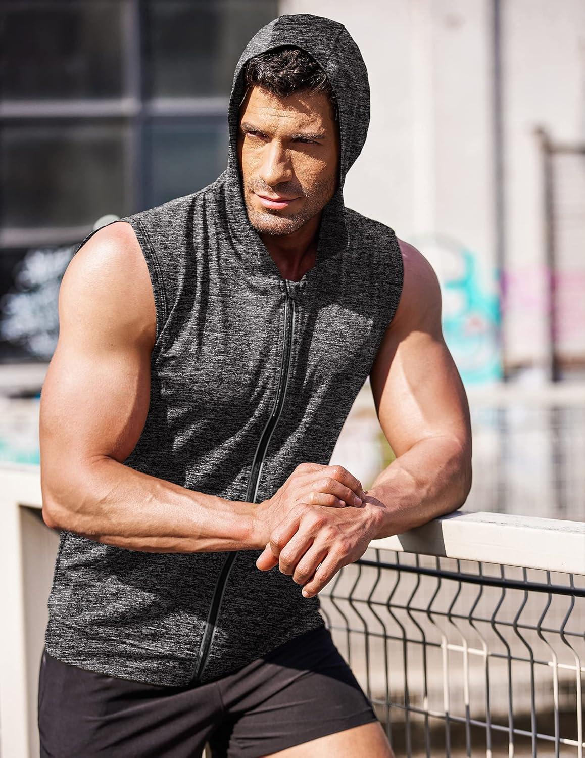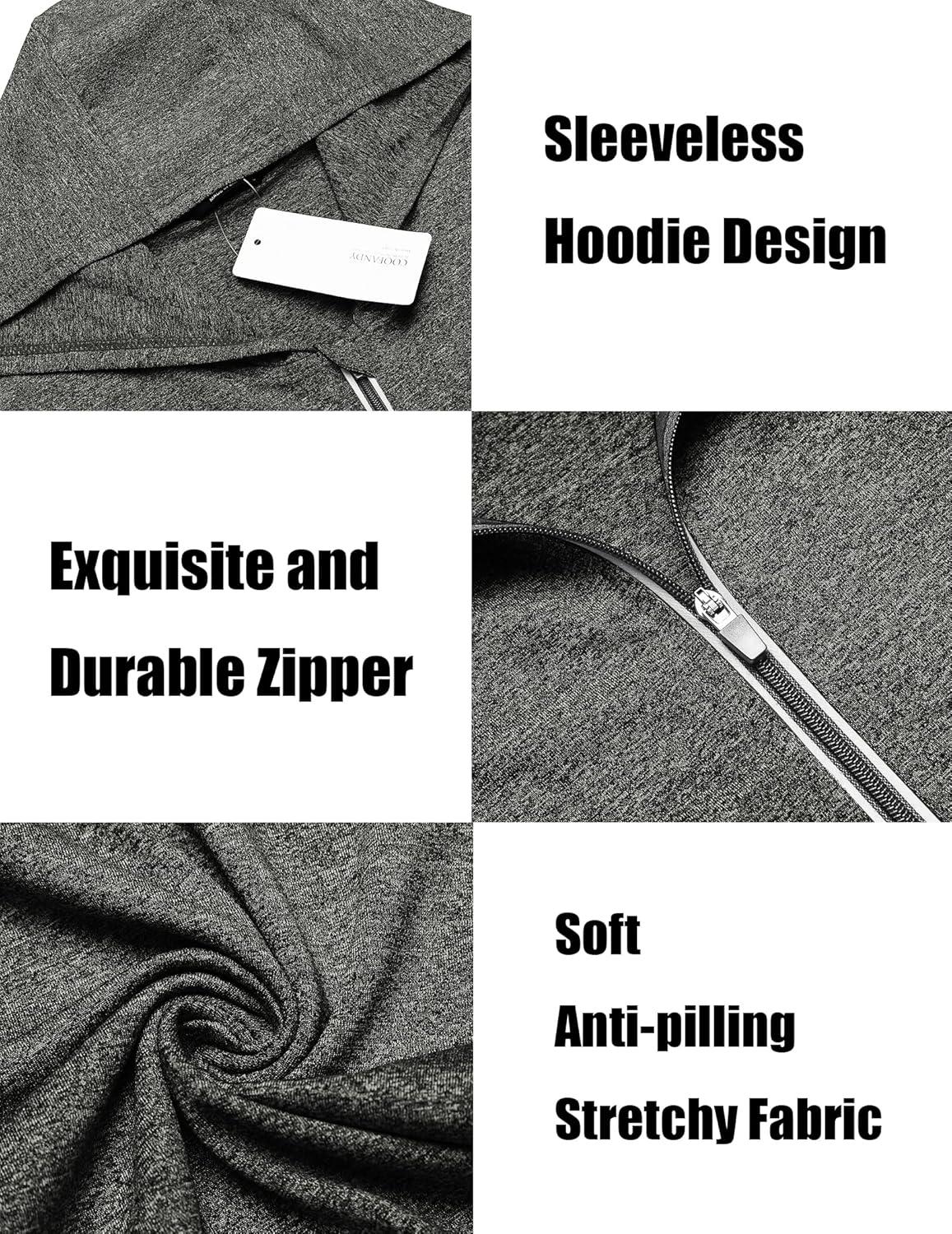 COOFANDY Men’s Workout Hooded Tank Tops Zip Up Sleeveless Hoodie Bodybuilding Fitness Gym Muscle Cut Off T Shirt(Dark Charcoal Grey)