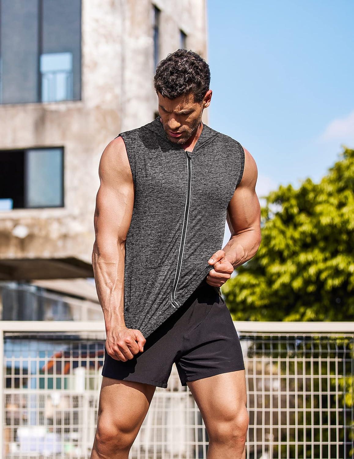 COOFANDY Men's Workout Hooded Tank Tops Zip Up Sleeveless Hoodie Bodybuilding Fitness Gym Muscle Cut Off T Shirt(Dark Charcoal Grey)