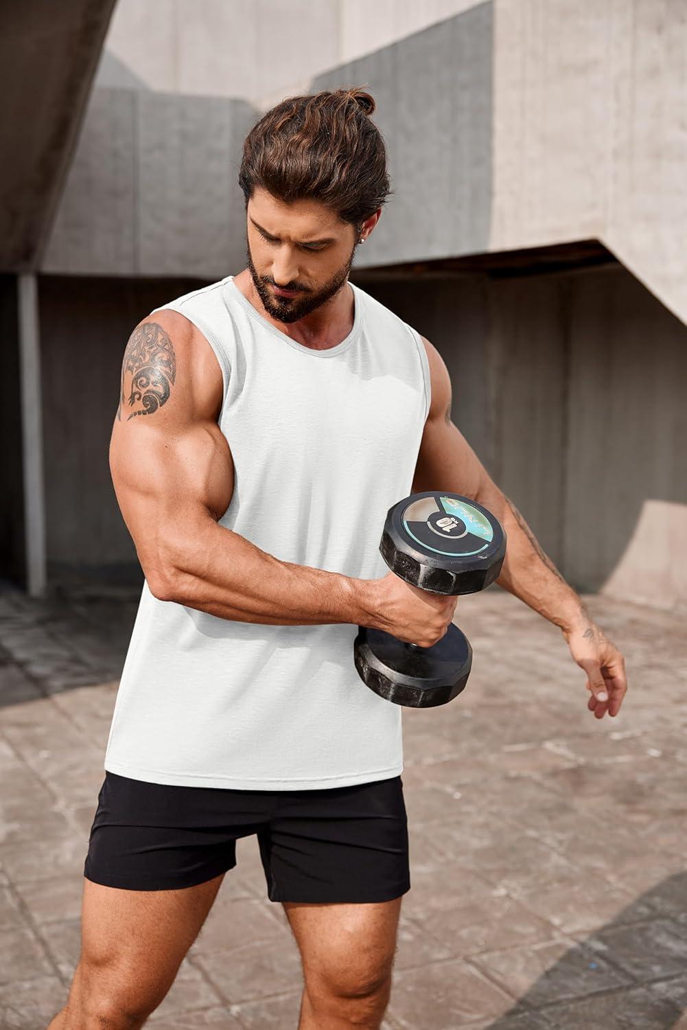 COOFANDY Men's Workout Tank Top 2 Pack Casual Soft Sleeveless Gym Muscle Shirts Bodybuilding Tee(Whitelight Blue)