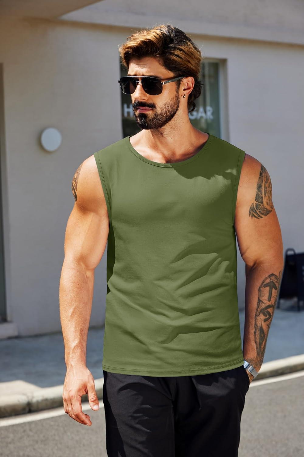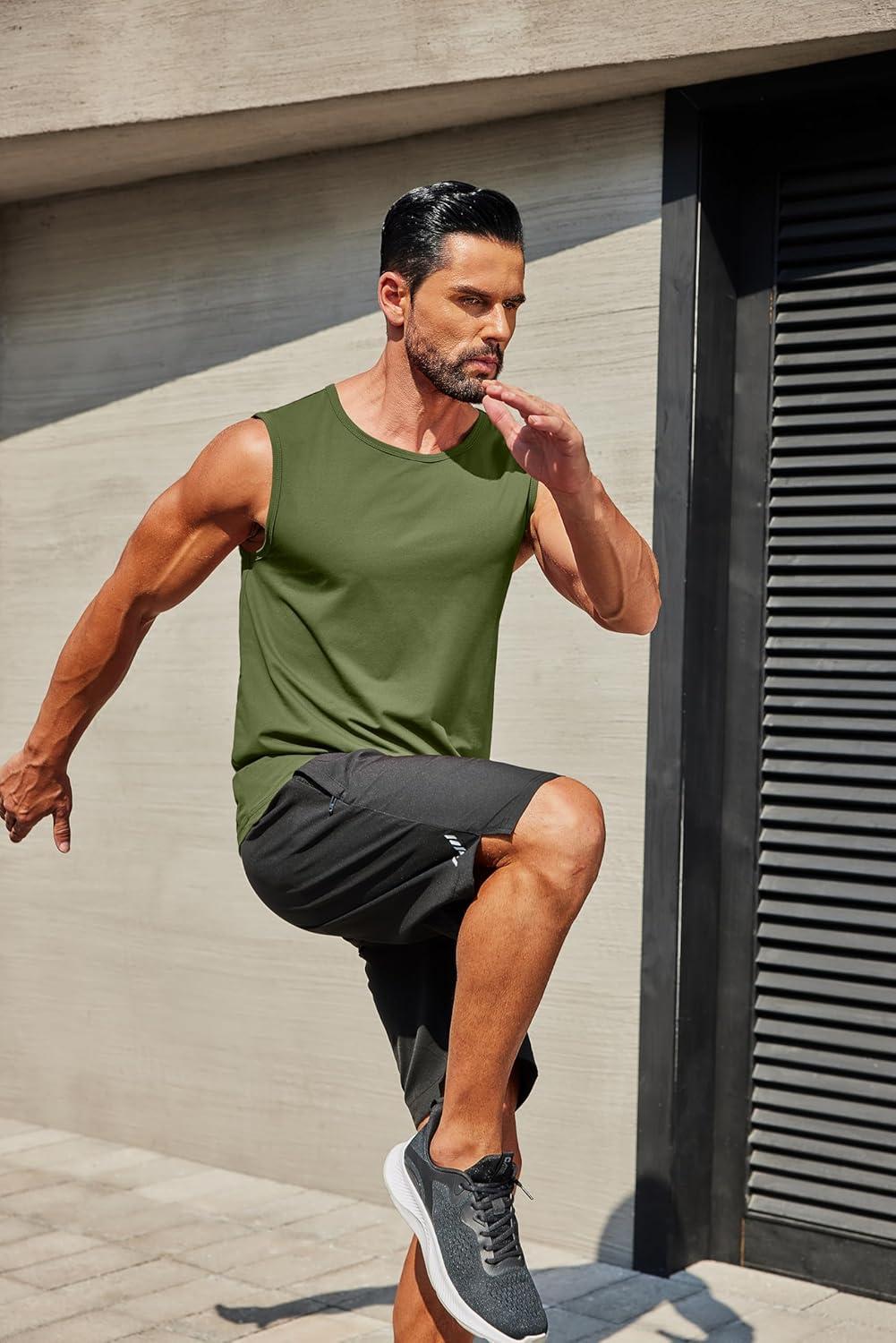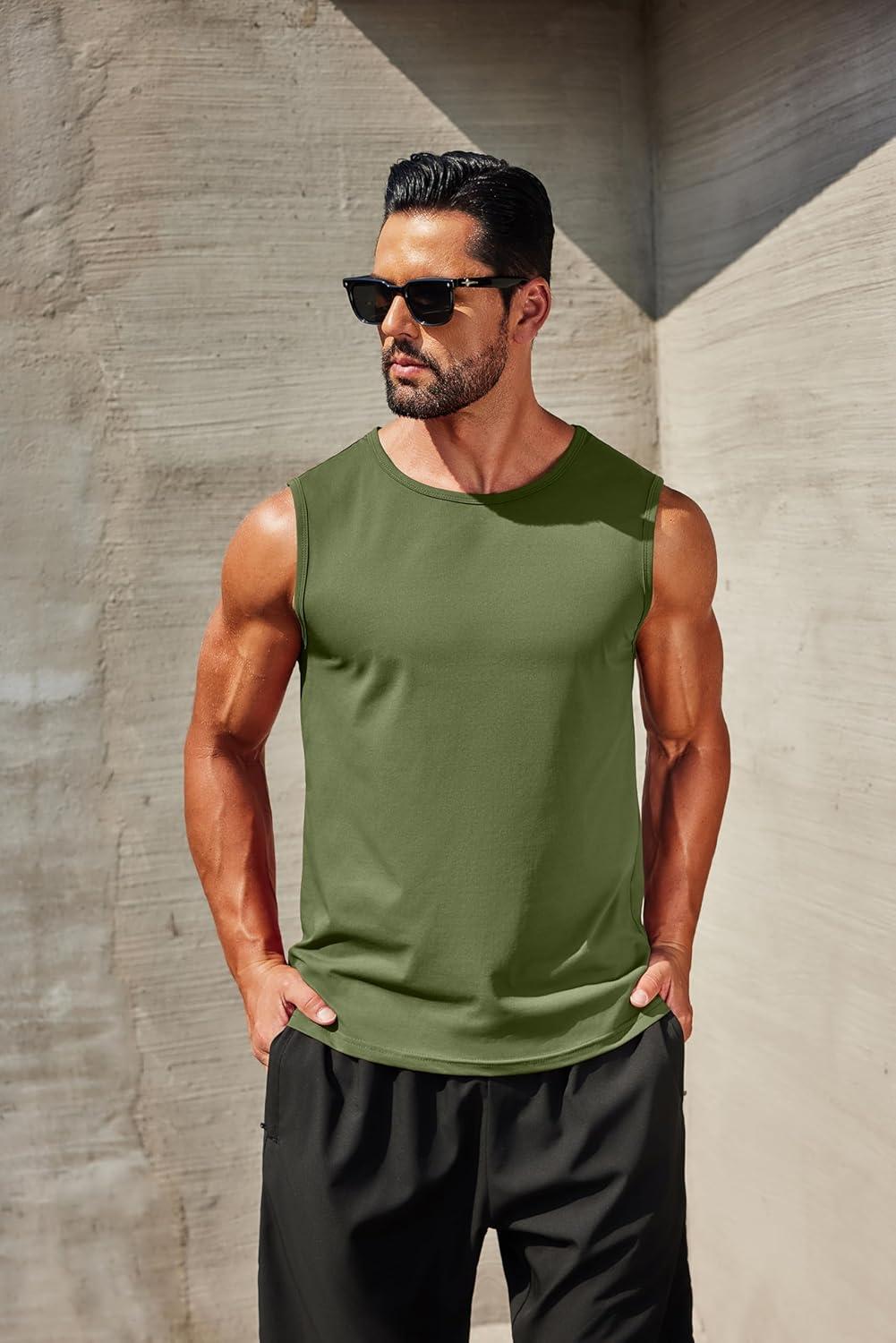COOFANDY Men's Workout Tank Tops 1/2 Pack Dry Fit Sleeveless Muscle Gym Shirts Stretch Bodybuilding Tee(Army Green)