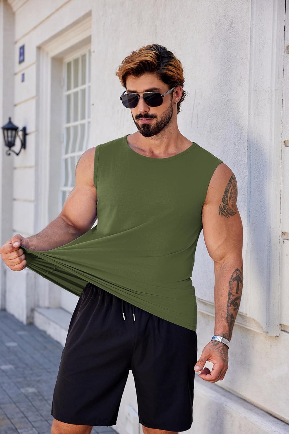 imageCOOFANDY Mens Workout Tank Tops 12 Pack Dry Fit Sleeveless Muscle Gym Shirts Stretch Bodybuilding TeeArmy Green