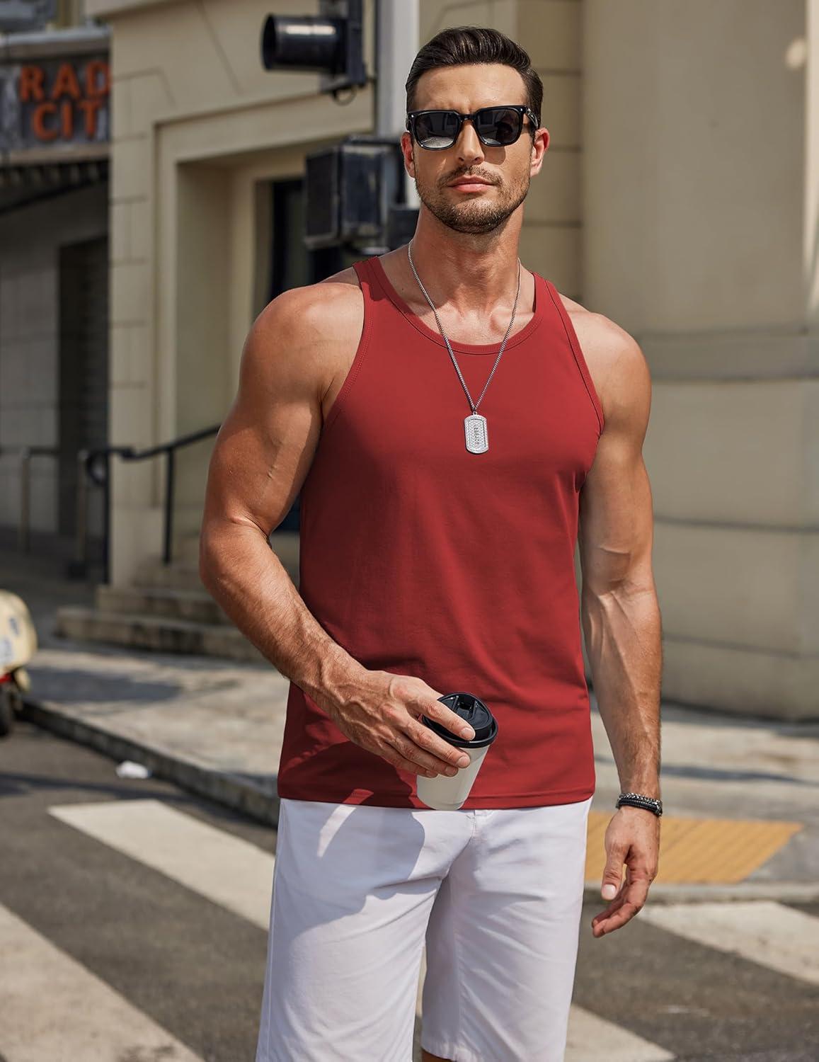COOFANDY Men’s Workout Tank Tops 2 Pack Y Back Sleeveless Shirts Gym Muscle T Shirt Bodybuidling Athletic Stringer Tee(Black/Wine Red)