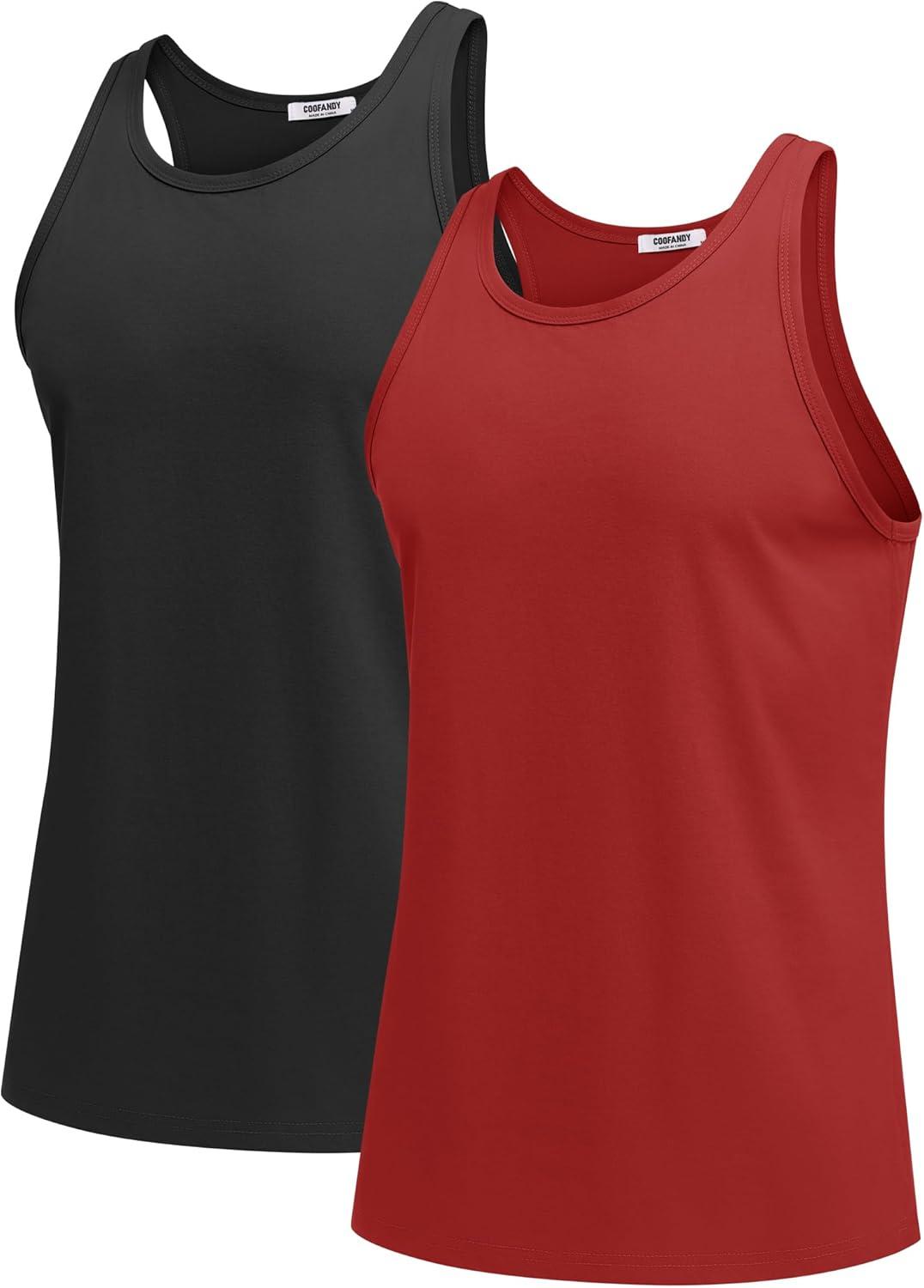 COOFANDY Men's Workout Tank Tops 2 Pack Y Back Sleeveless Shirts Gym Muscle T Shirt Bodybuidling Athletic Stringer Tee(Black/Wine Red)