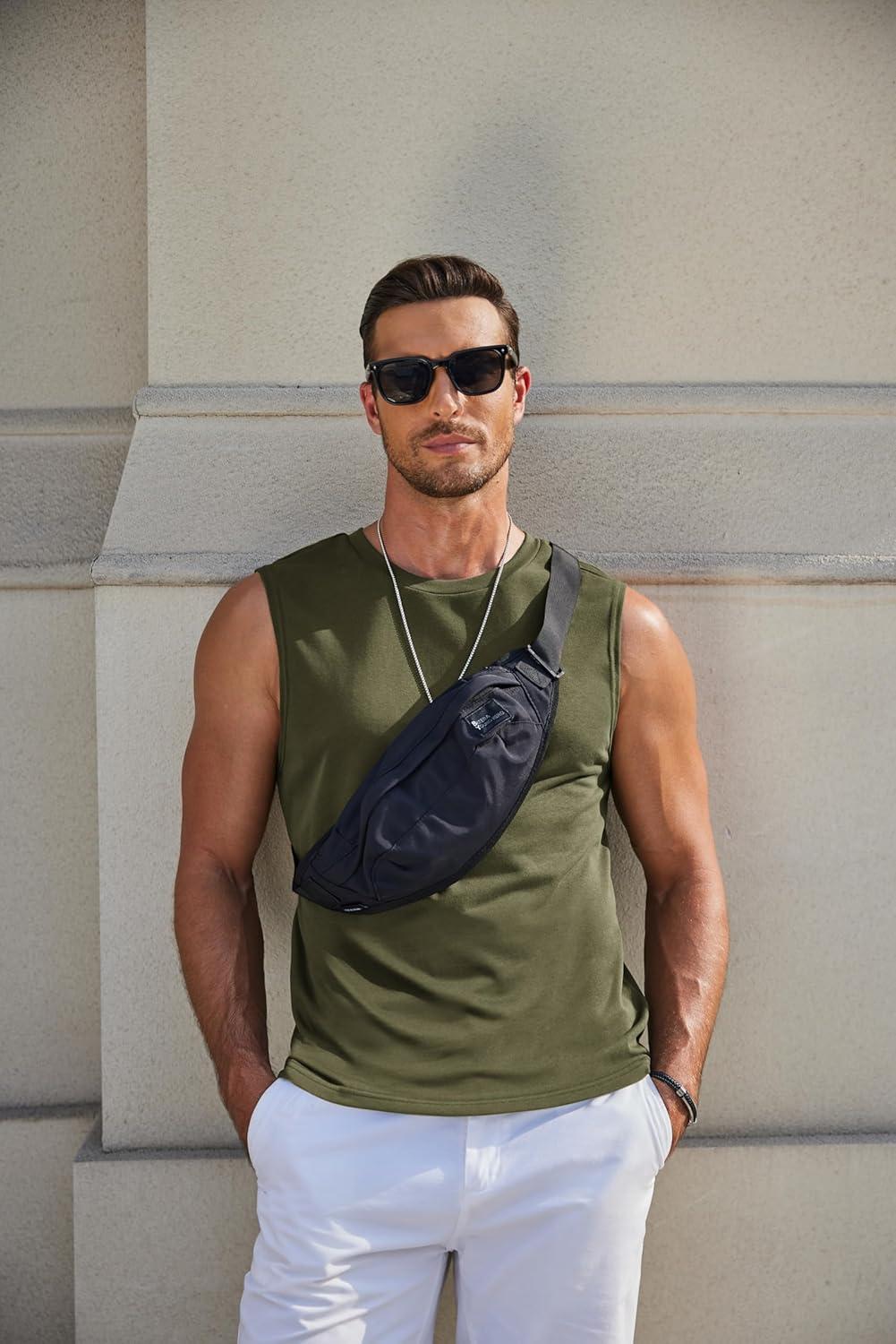 COOFANDY Mens Workout Tank Tops Cotton 3 Pack Soft Gym Muscle Shirt Sleeveless Classic T Shirts(Black/Army Green)