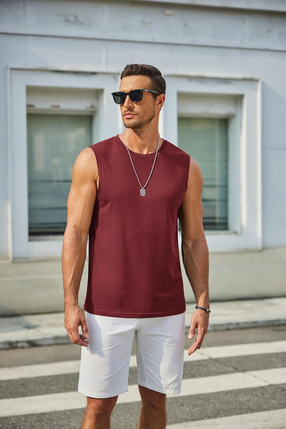 COOFANDY Mens Workout Tank Tops Cotton 3 Pack Soft Gym Muscle Shirt Sleeveless Classic T Shirts(Black/Medium Grey/ Wine Red)