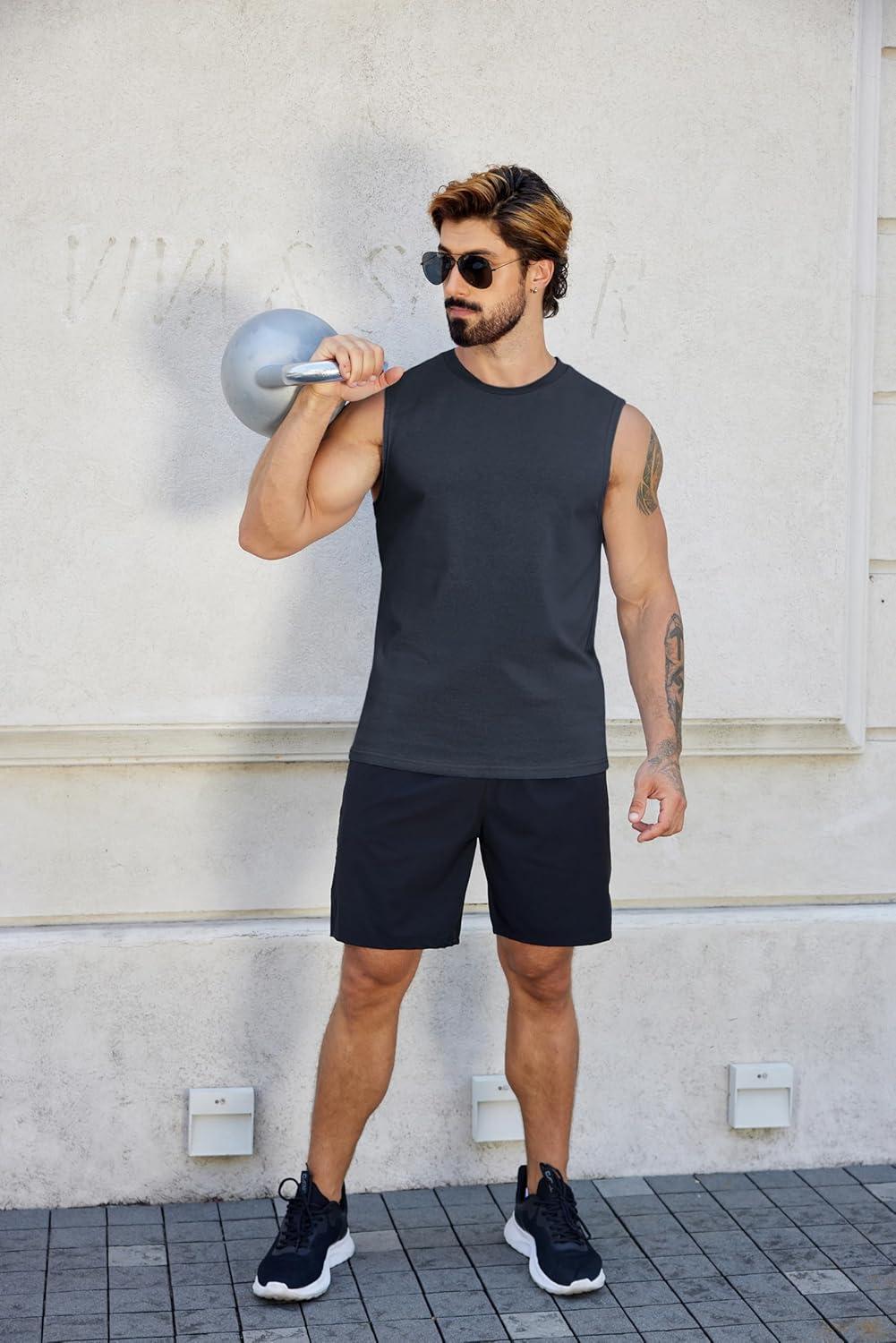 COOFANDY Mens Workout Tank Tops Cotton 3 Pack Soft Gym Muscle Shirt Sleeveless Classic T Shirts(Black/White/Light Grey)