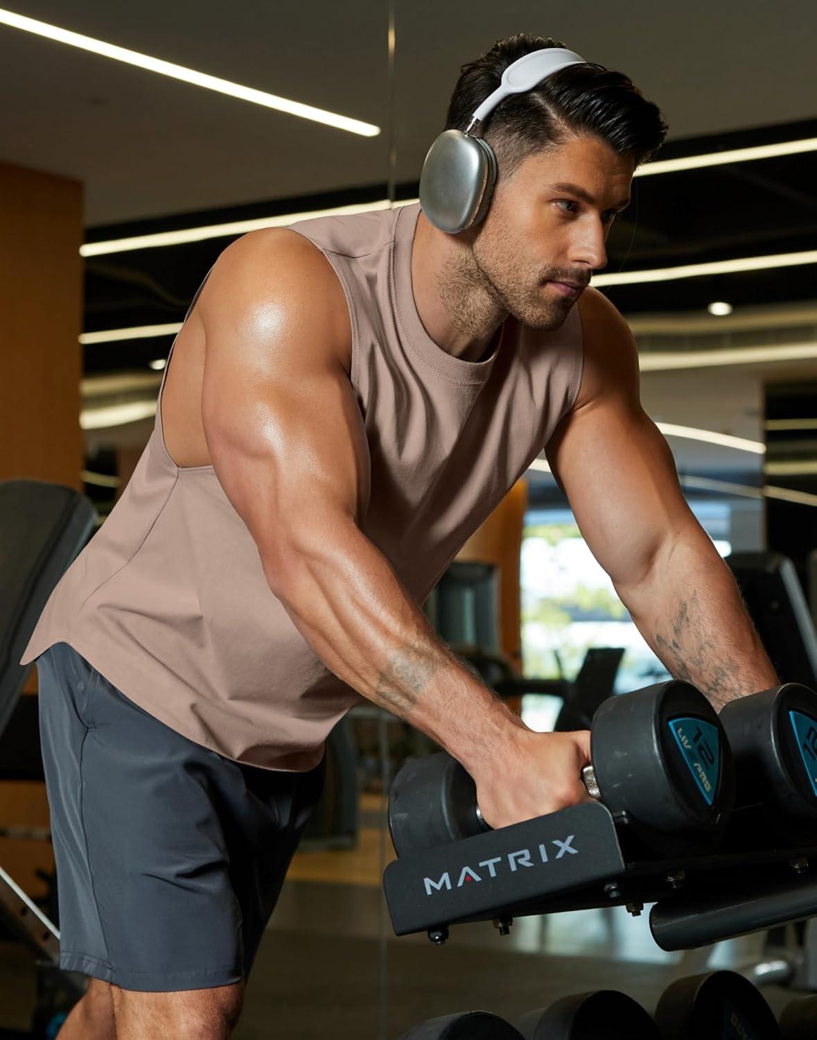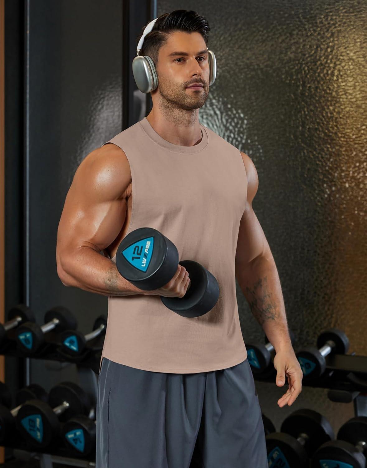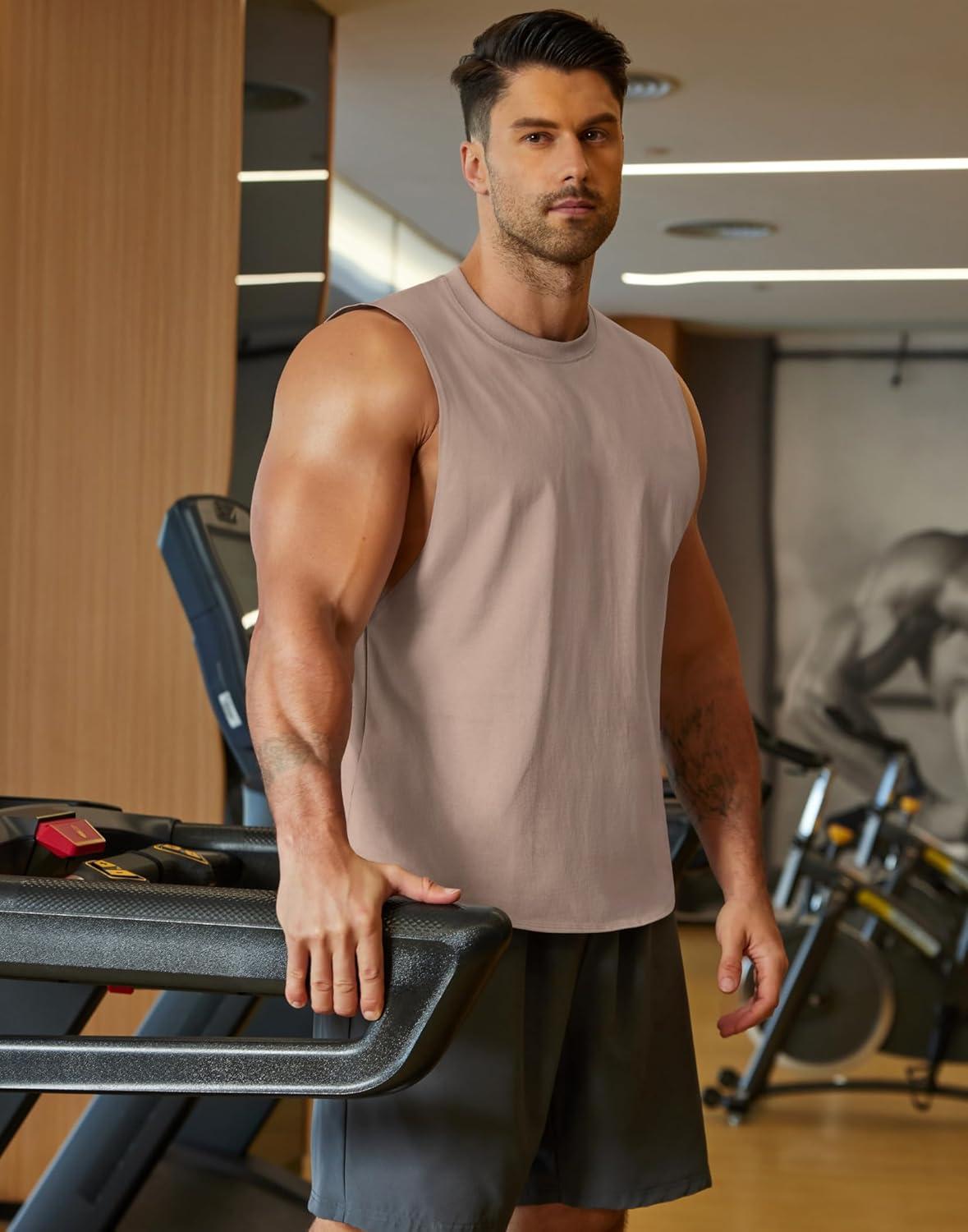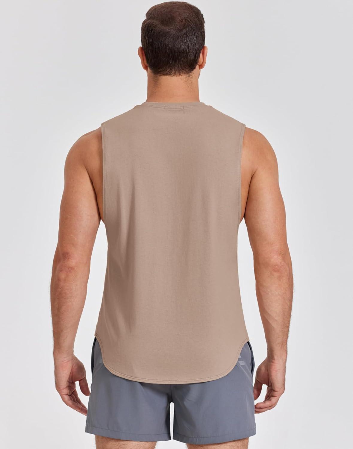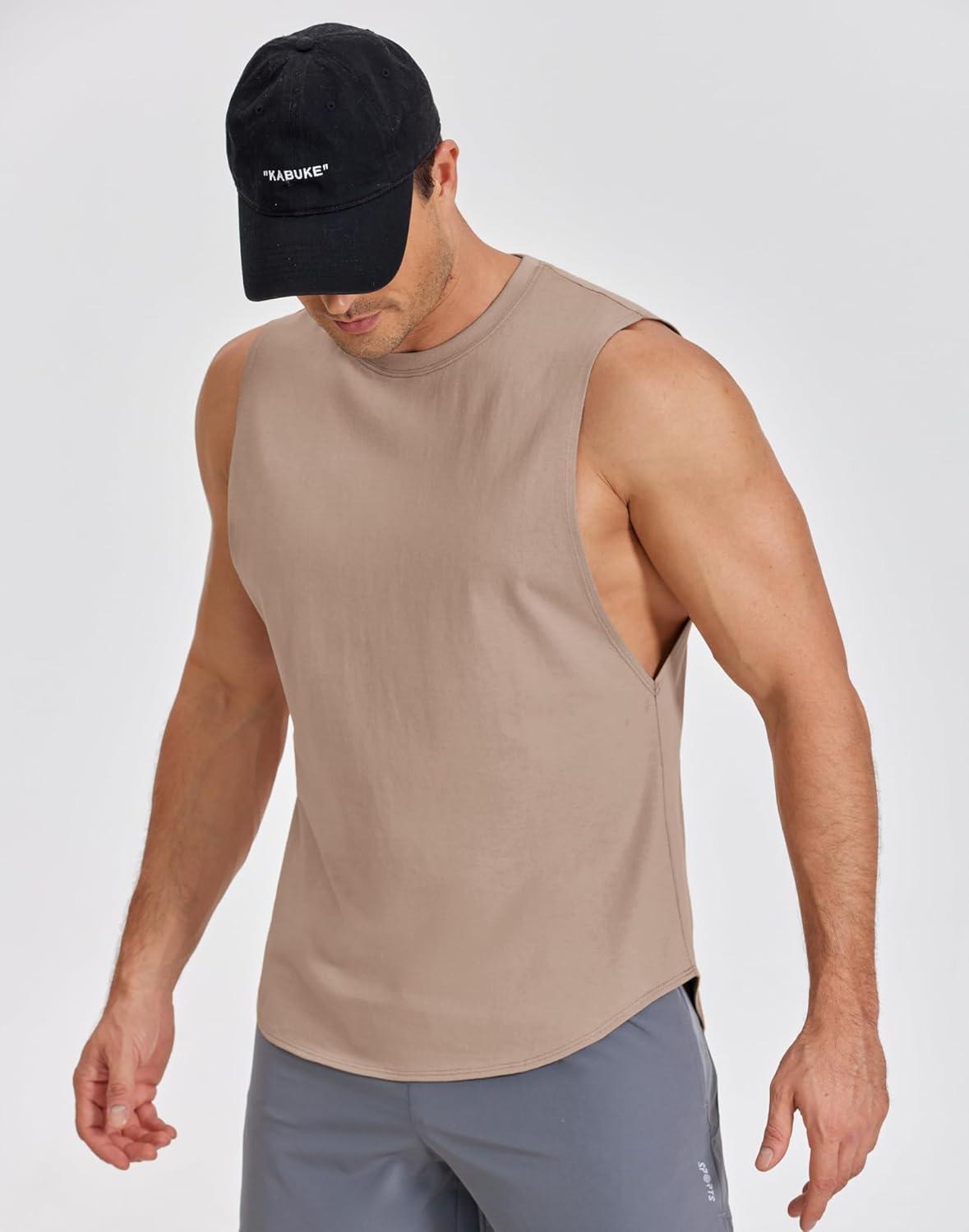 COOFANDY Mens Workout Tank Tops Cotton Cut Off Sleeveless Muscle Shirts Gym Athletic Running T Shirt(Khaki)