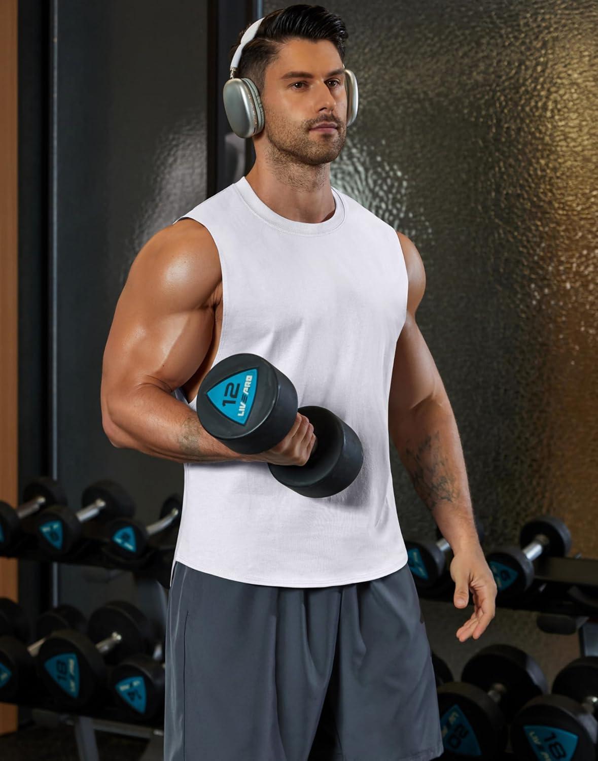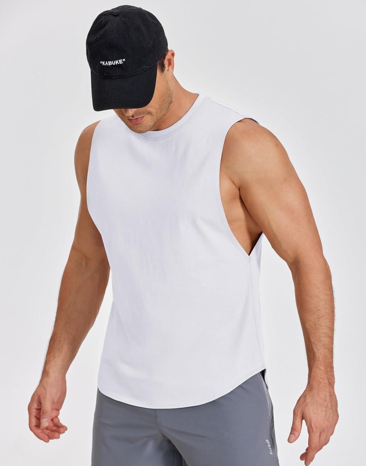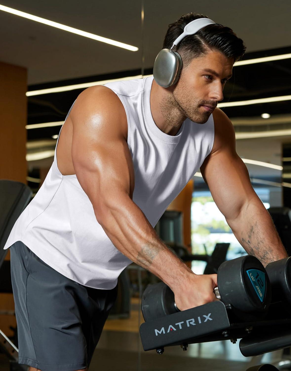 COOFANDY Mens Workout Tank Tops Cotton Cut Off Sleeveless Muscle Shirts Gym Athletic Running T Shirt(White)