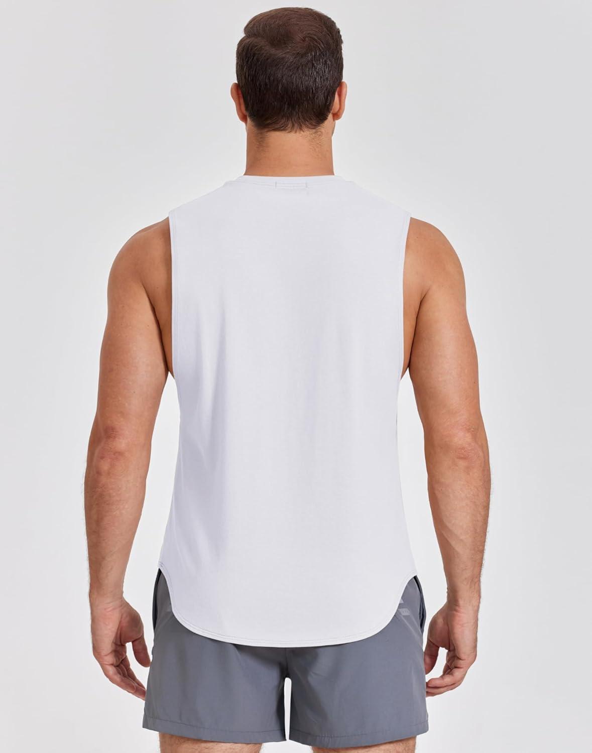 imageCOOFANDY Mens Workout Tank Tops Cotton Cut Off Sleeveless Muscle Shirts Gym Athletic Running T ShirtWhite