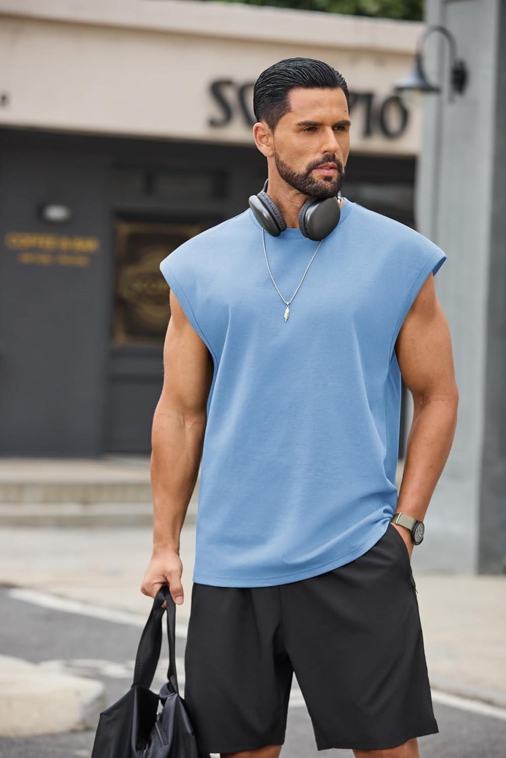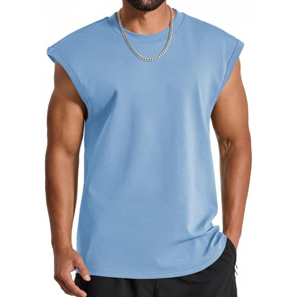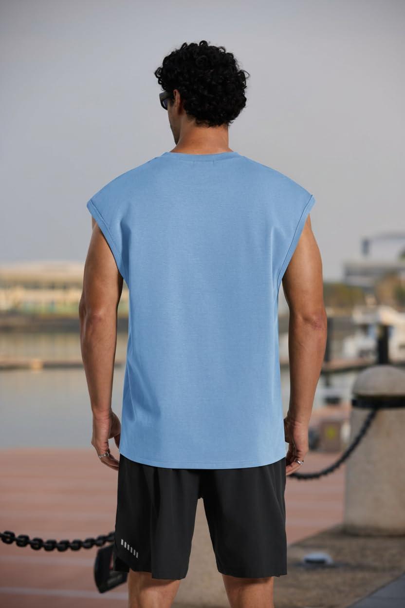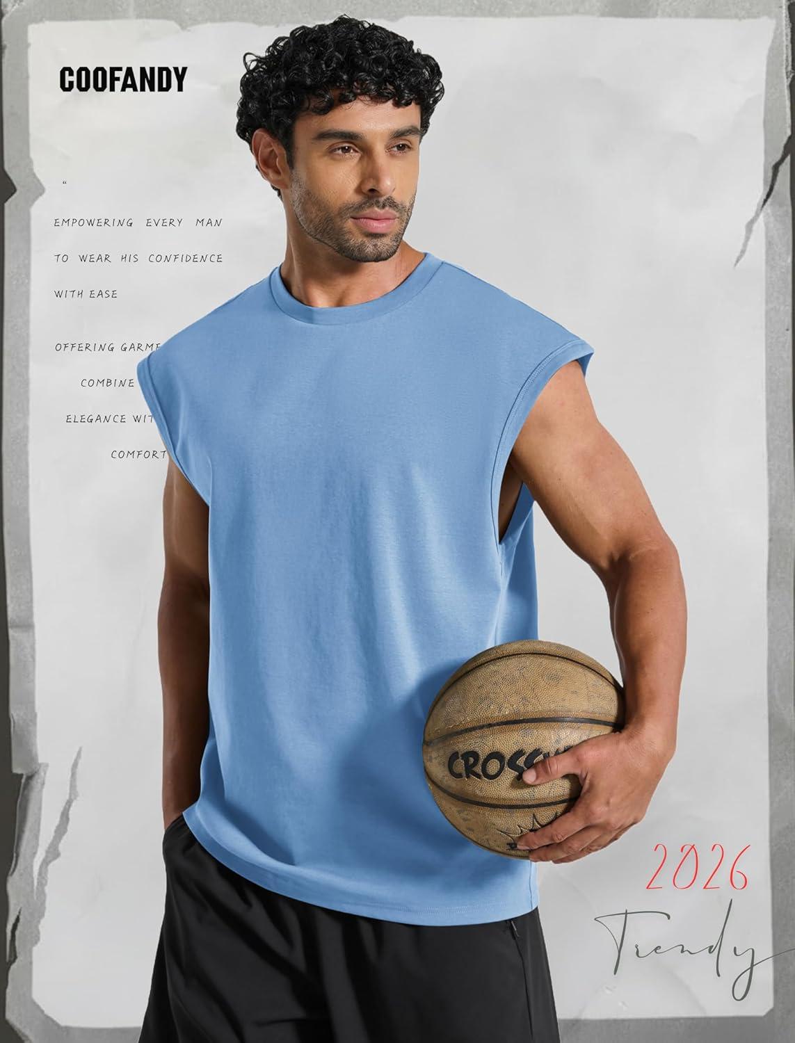 COOFANDY Mens Workout Tank Tops Summer Sleeveless Tee Shirts Casual Stylish Gym Muscle Shirt Loose Fit for Basketball(Light Blue)
