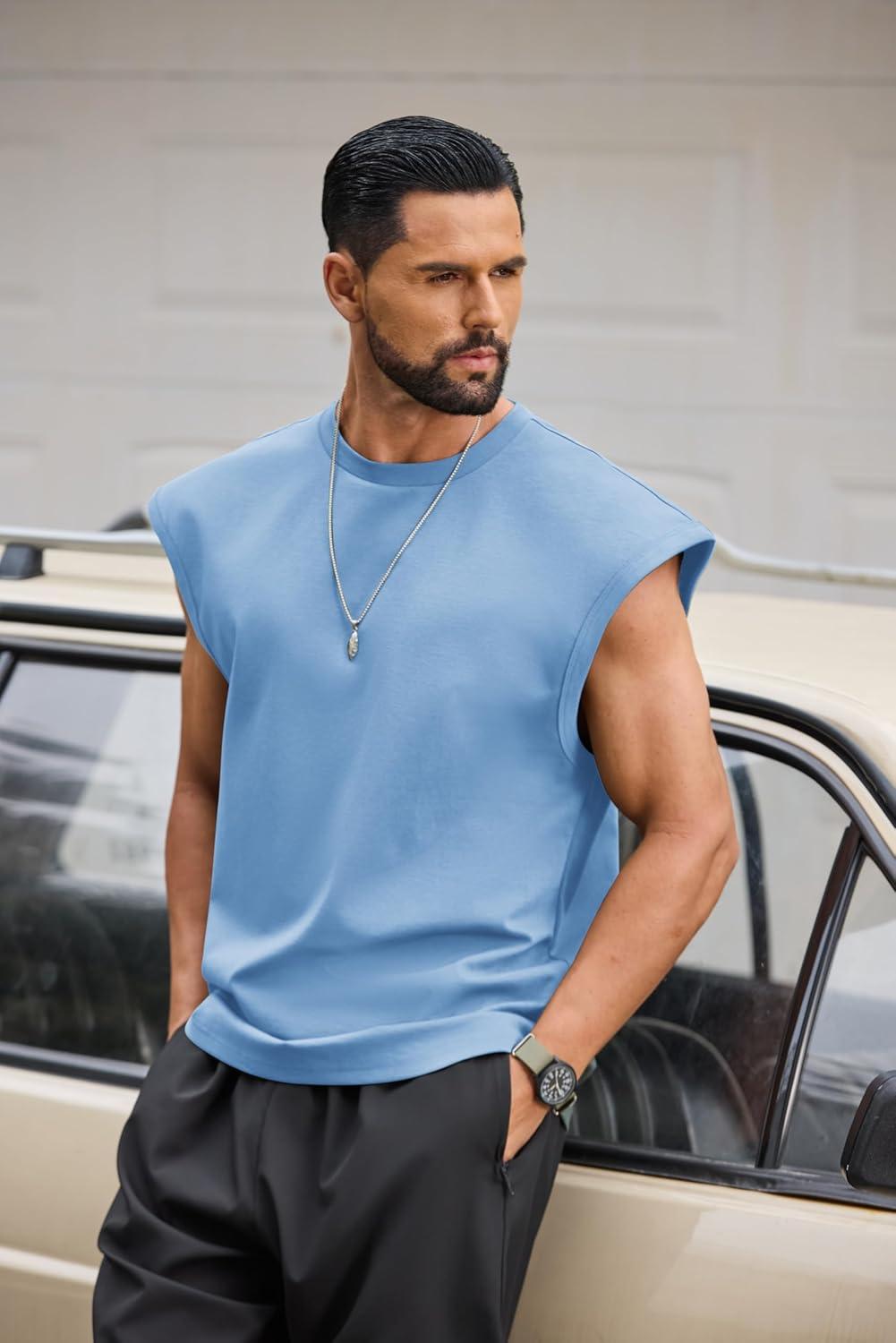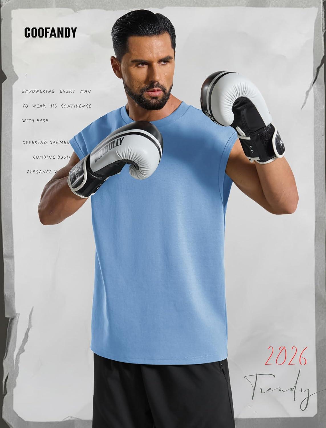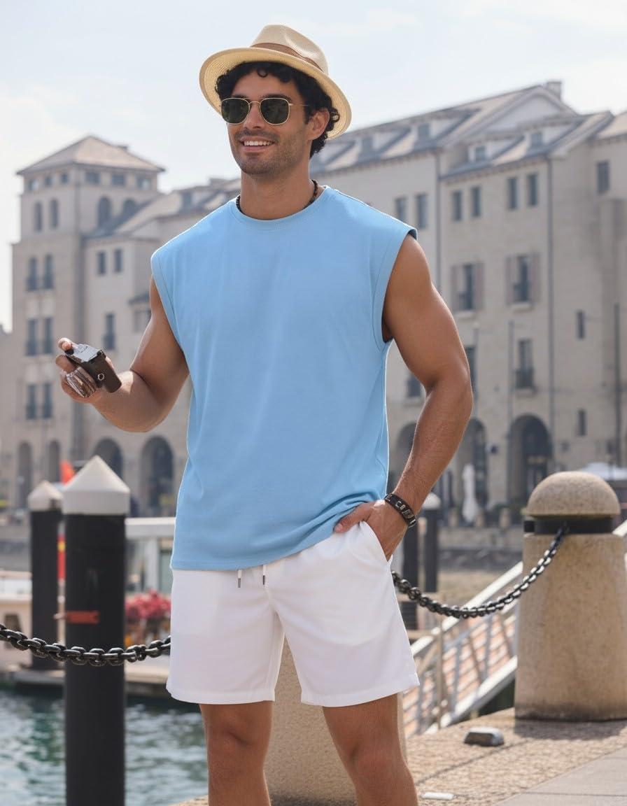 COOFANDY Mens Workout Tank Tops Summer Sleeveless Tee Shirts Casual Stylish Gym Muscle Shirt Loose Fit for Basketball(Light Blue)