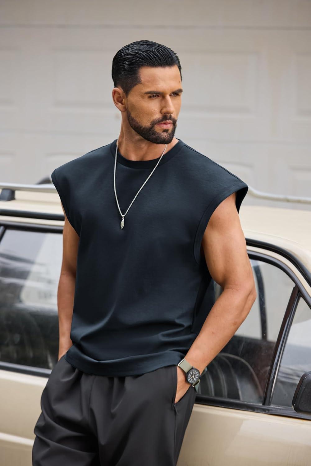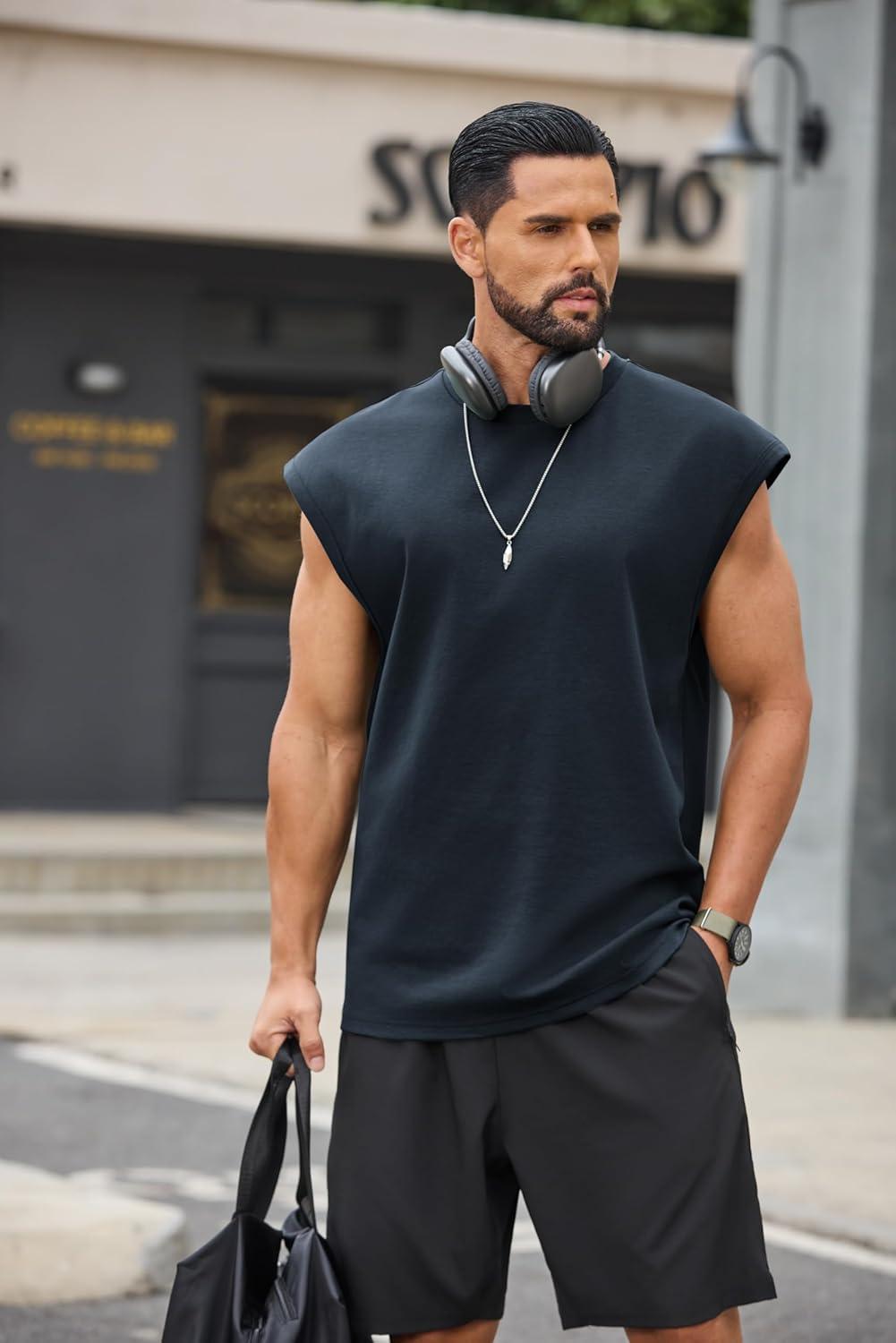 COOFANDY Mens Workout Tank Tops Summer Sleeveless Tee Shirts Casual Stylish Gym Muscle Shirt Loose Fit for Basketball(Light Grey)