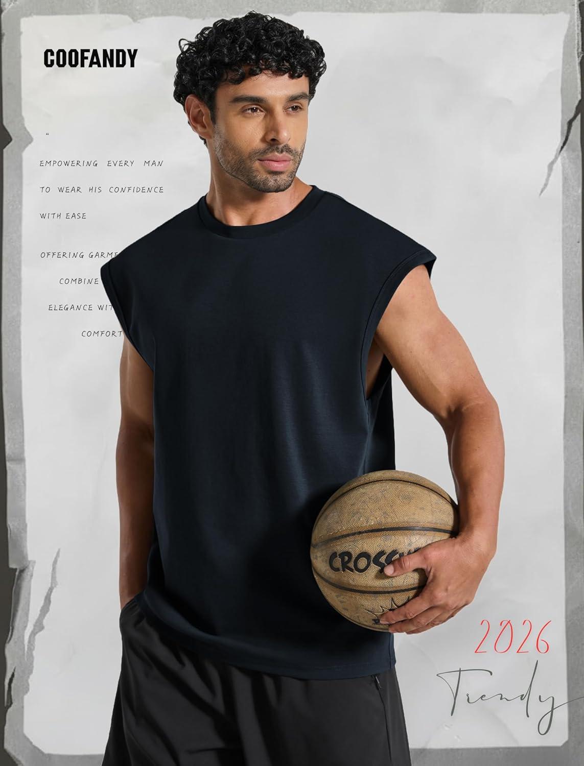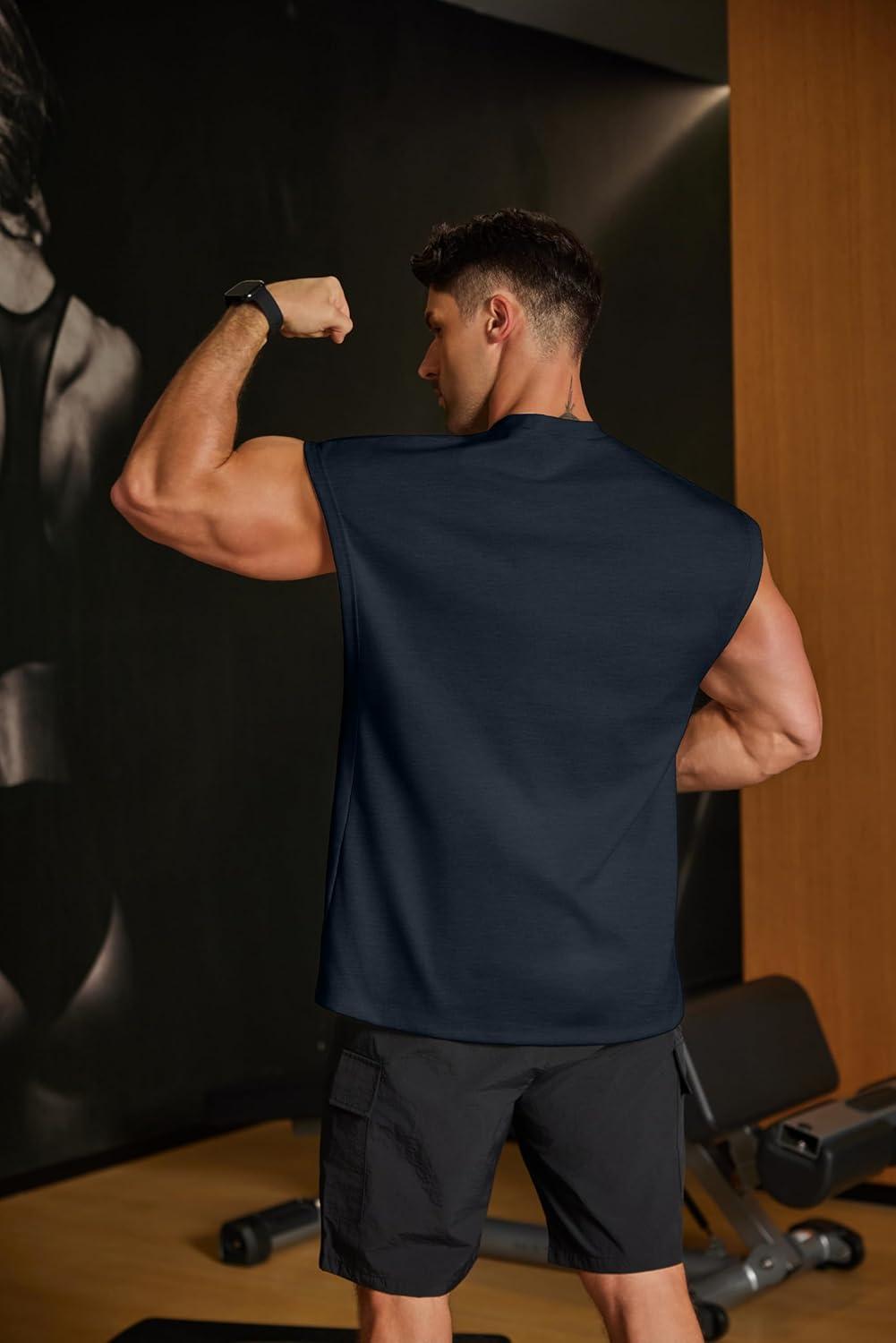 COOFANDY Mens Workout Tank Tops Summer Sleeveless Tee Shirts Casual Stylish Gym Muscle Shirt Loose Fit for Basketball(Midnight Blue)