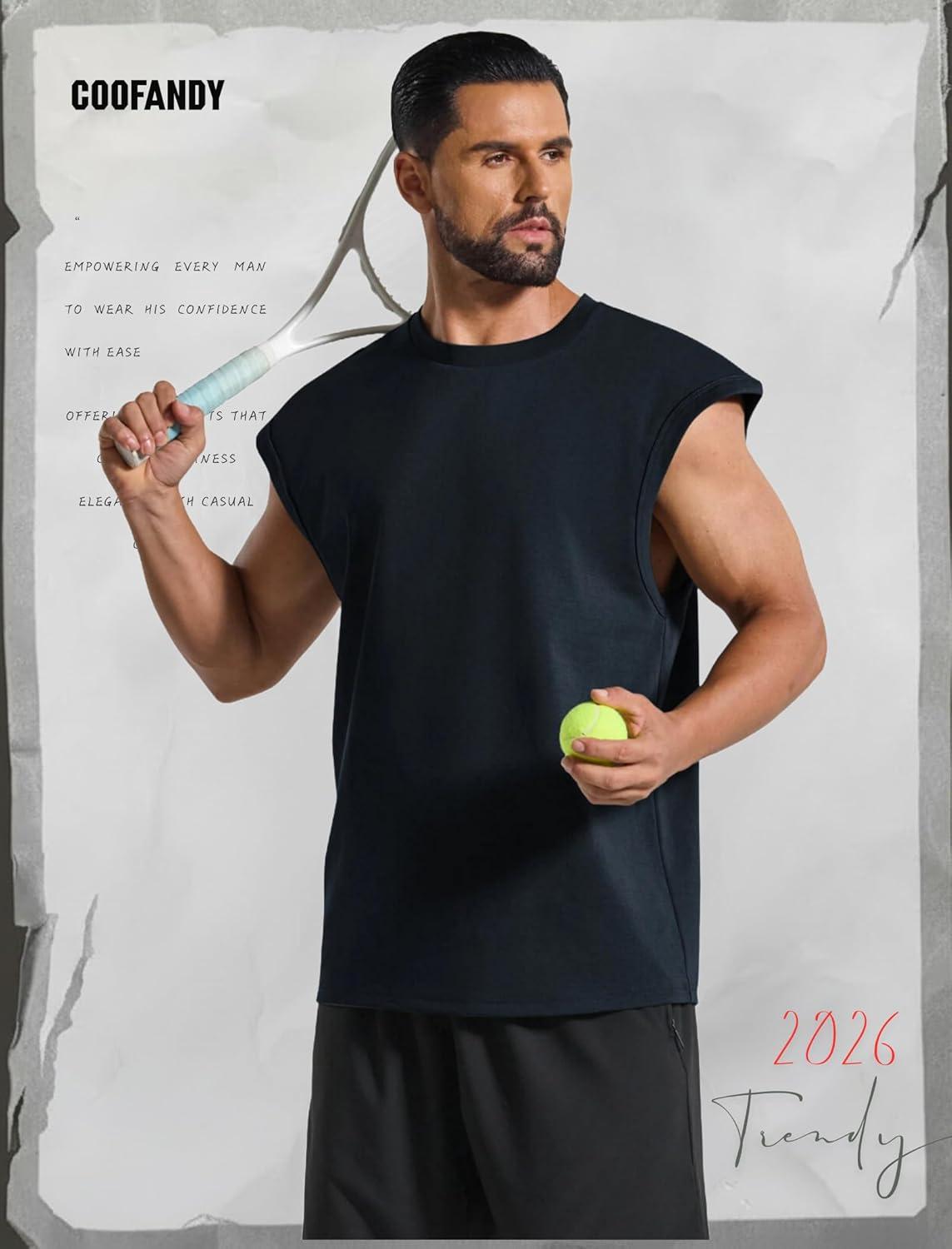 COOFANDY Mens Workout Tank Tops Summer Sleeveless Tee Shirts Casual Stylish Gym Muscle Shirt Loose Fit for Basketball(White)