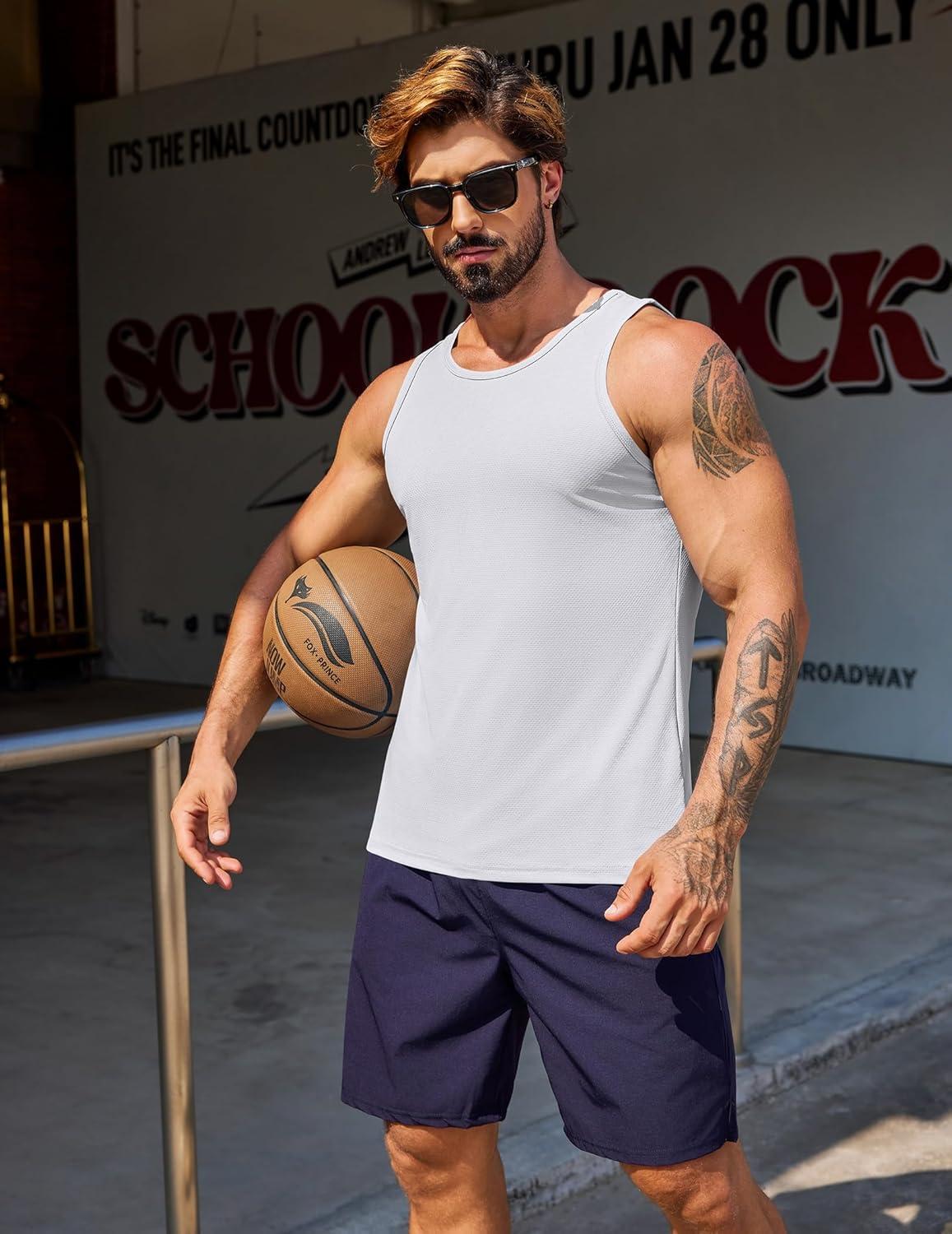 COOFANDY Men’s Workout Tank Tops UPF 50+ Sleeveless Gym Muscle Shirts Cooling Quick Dry Bodybuilding Tanks for Swim Beach(Black/White/Light Gray)